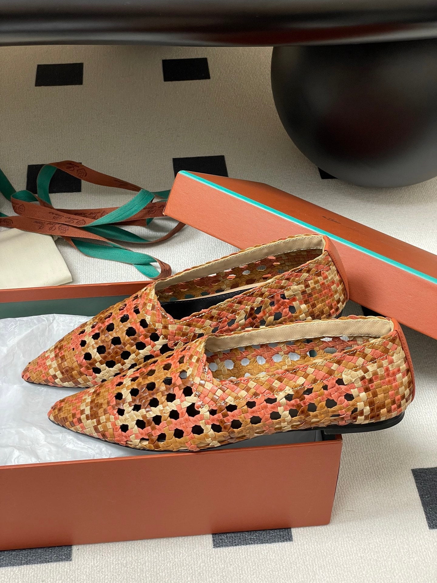 LP POINTED-TOE BALLET FLATS 25S IN ORANGE LAMBSKIN