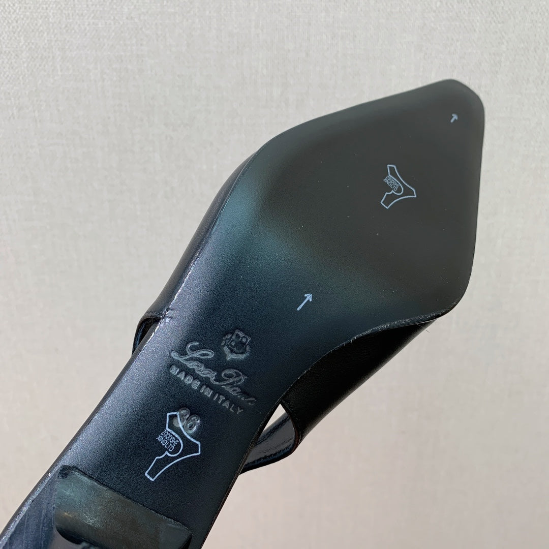 LP POINTED TOE MID-HEEL SLINGBACK BLACK CALFSKIN