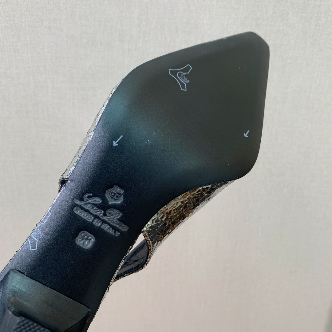 LP POINTED TOE MID-HEEL SLINGBACK SILVER CALFSKIN