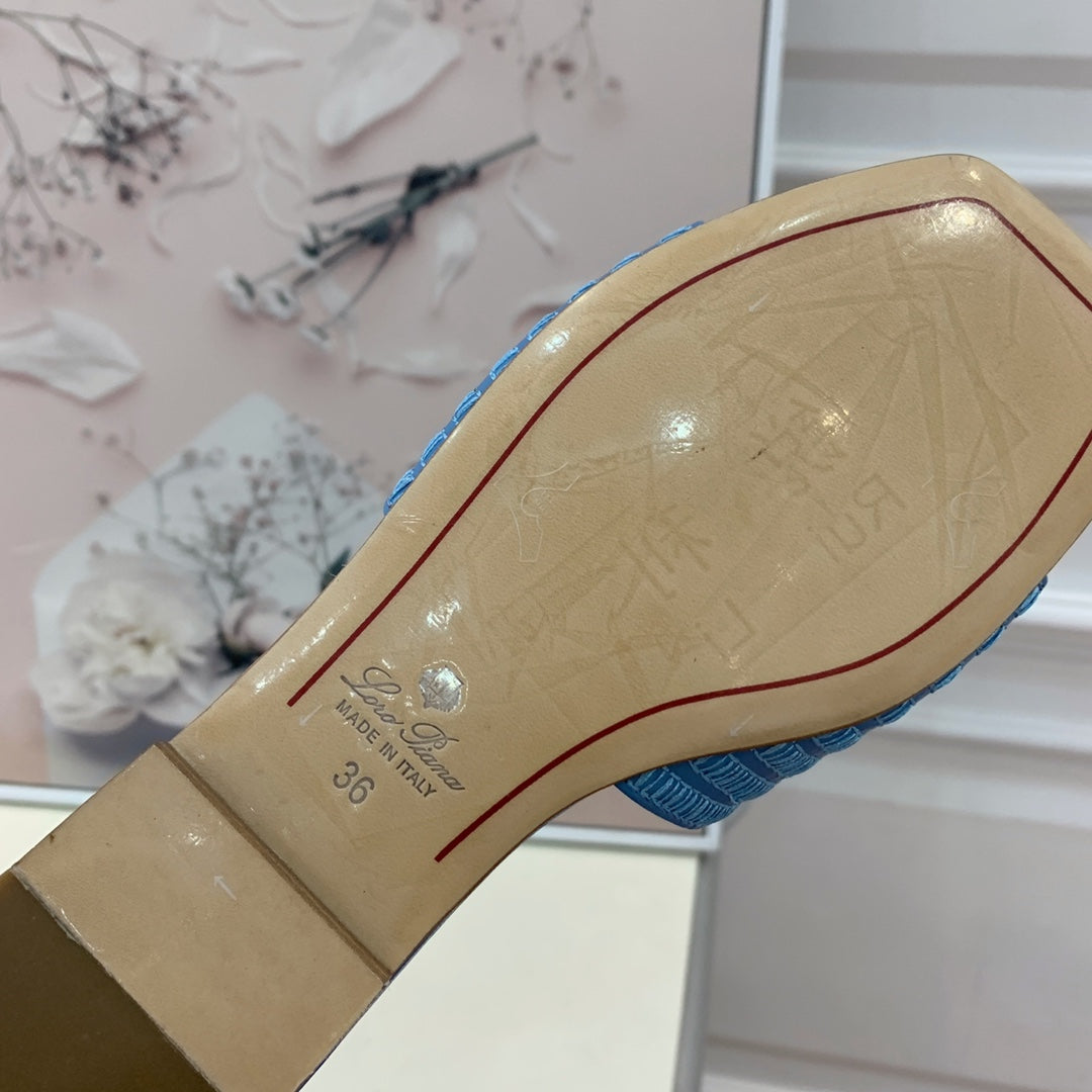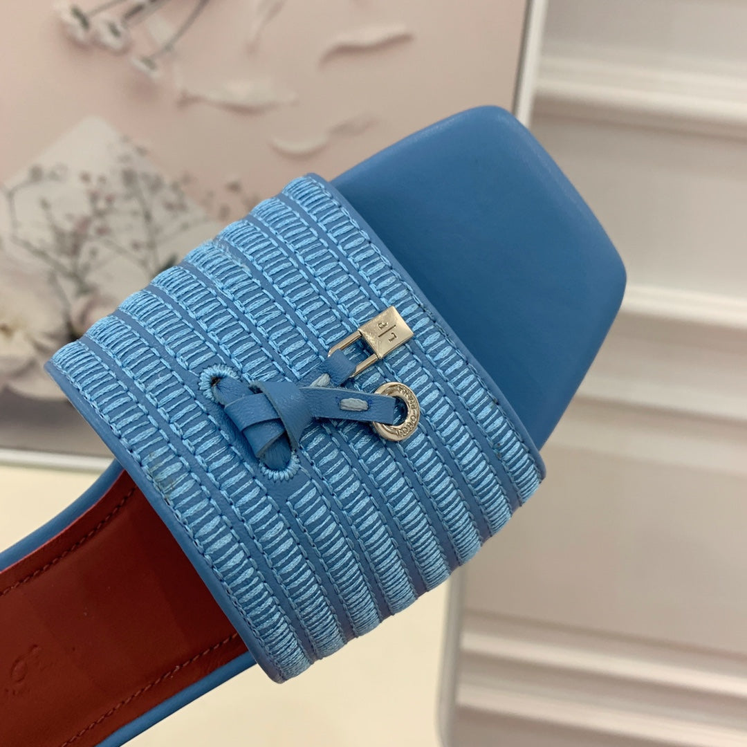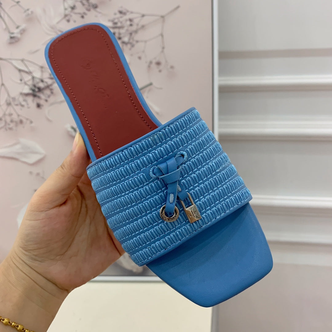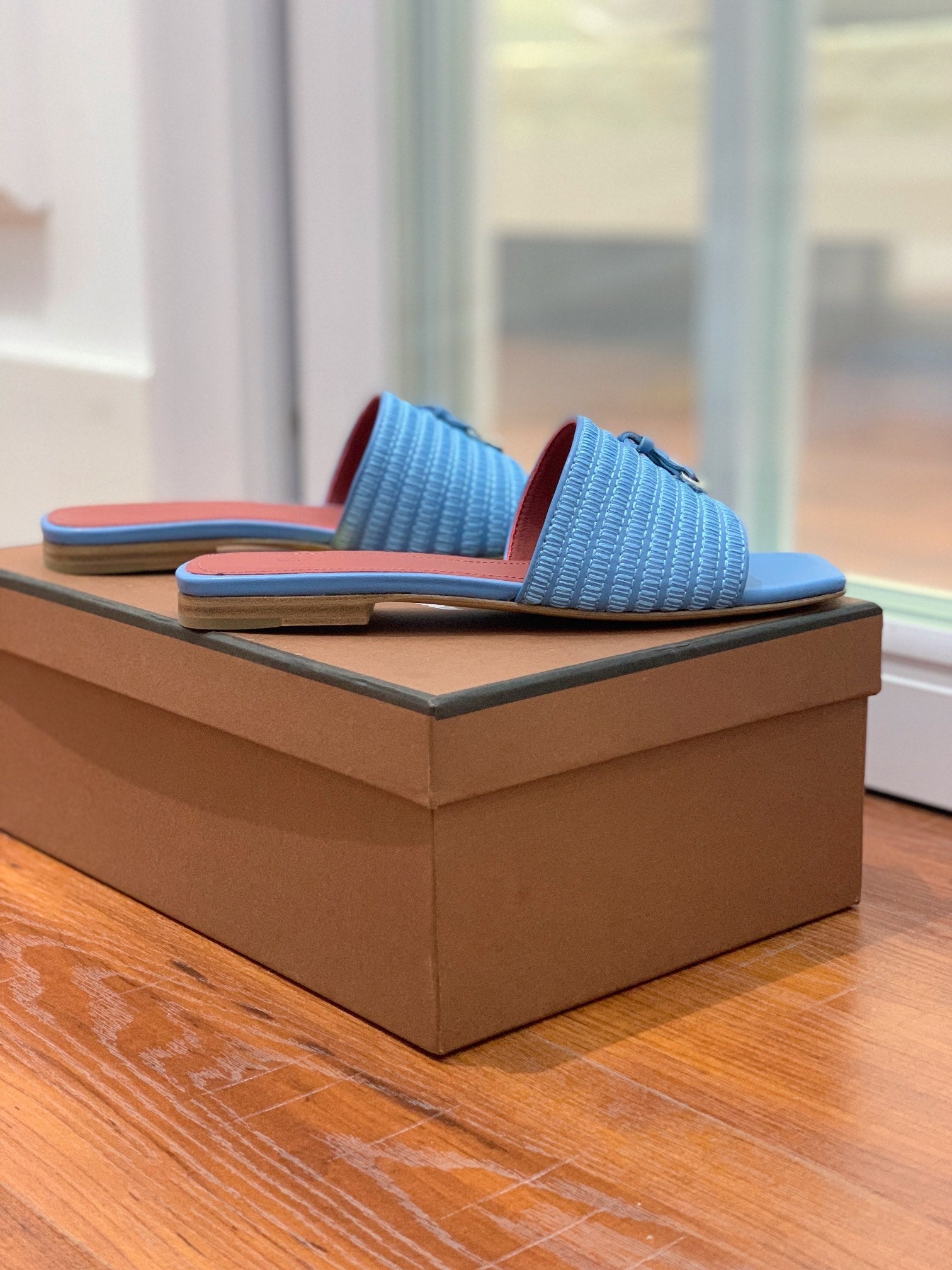 LP RAFFIA CHARMS FLATS SANDAL SKY CALFSKIN