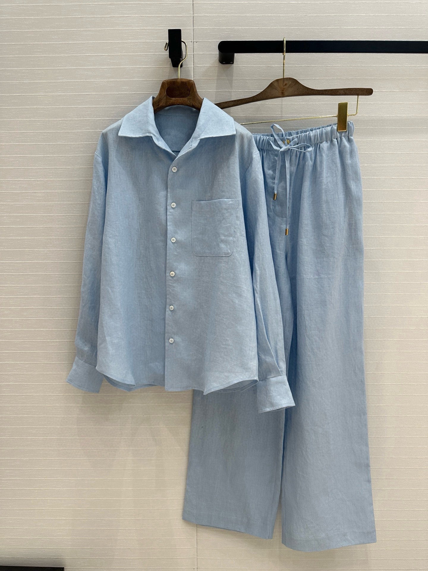 LP STRAIGHT-LEG LINEN PANTS IN BLUE