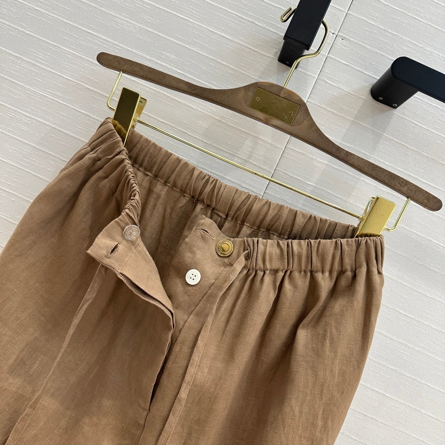 LP STRAIGHT-LEG LINEN PANTS IN BROWN