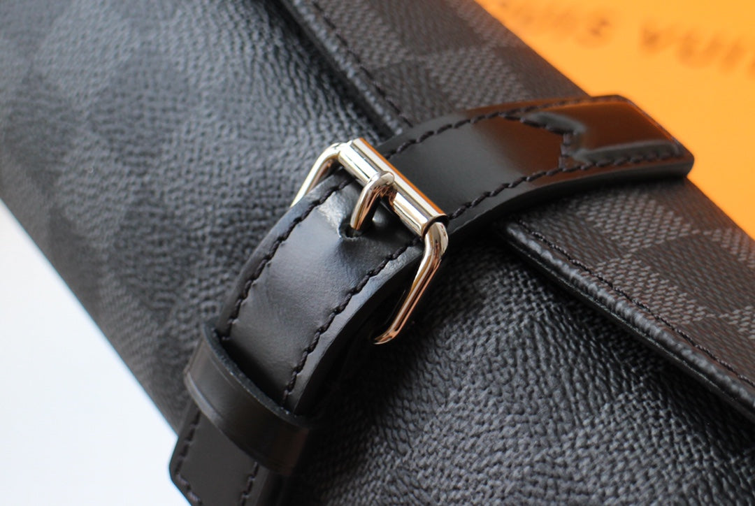 LV 25S ASTUCCIO PER 3 OROLOGI 20 IN BLACK DAMIER GRAPHITE CALFSKIN
