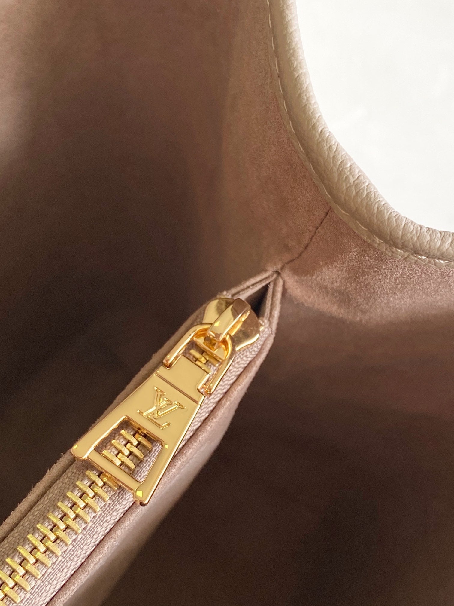 LV 25S BABYLONE TOTE GM BAG 37 IN TOURTERELLE GREY CALFSKIN GOLD HARDWARE