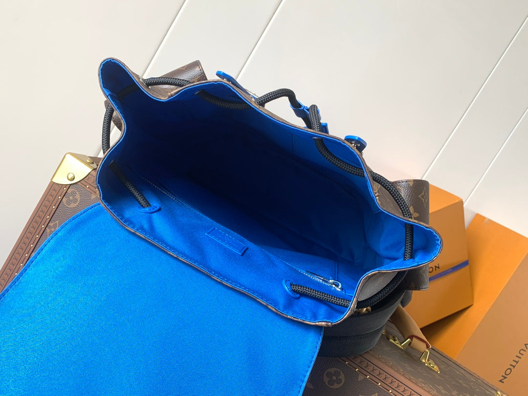 LV 25S CHRISTOPHER BACKPACK 48 IN BROWN AND PERSIAN BLUE CANVAS MONOGRAM