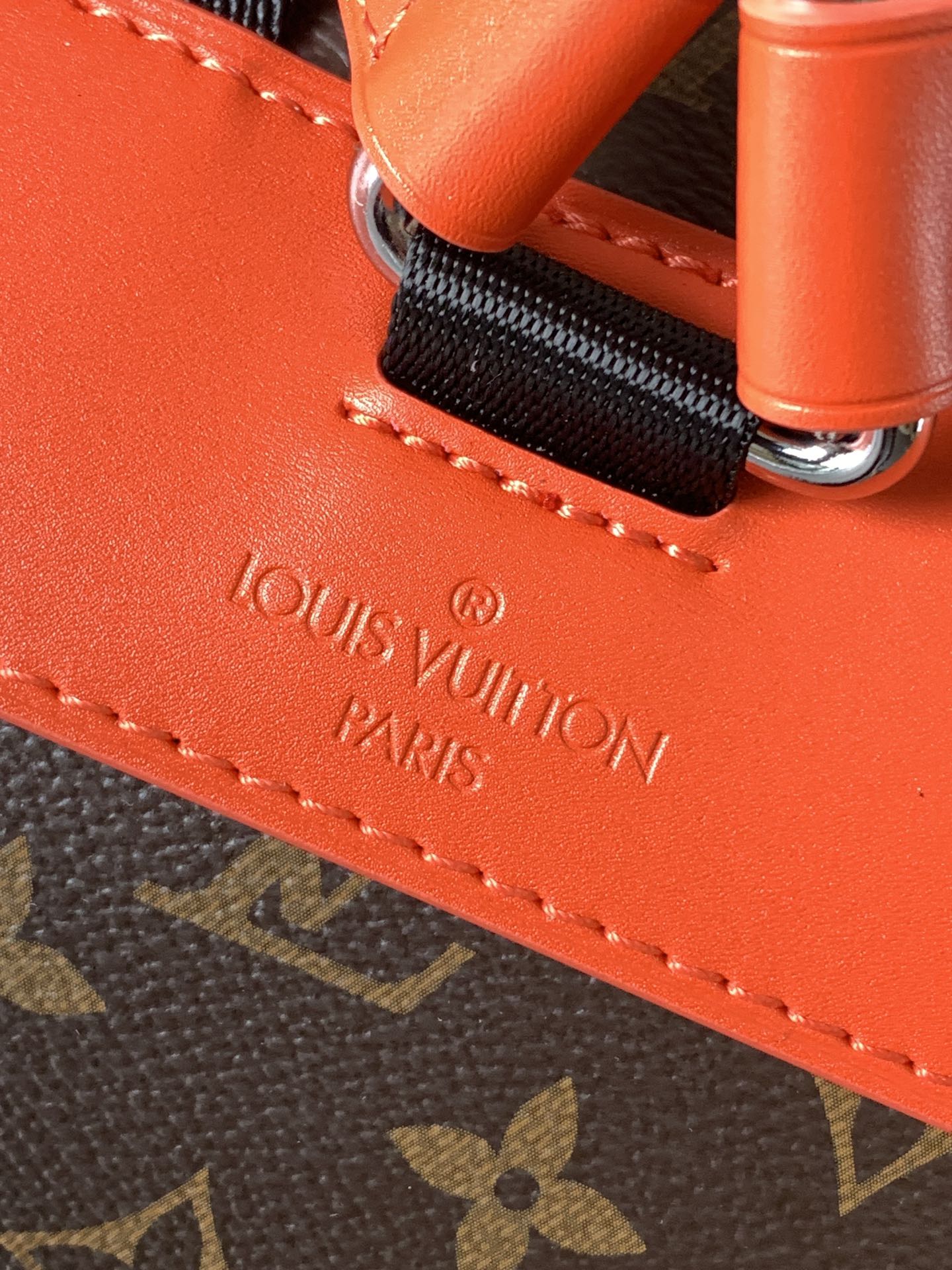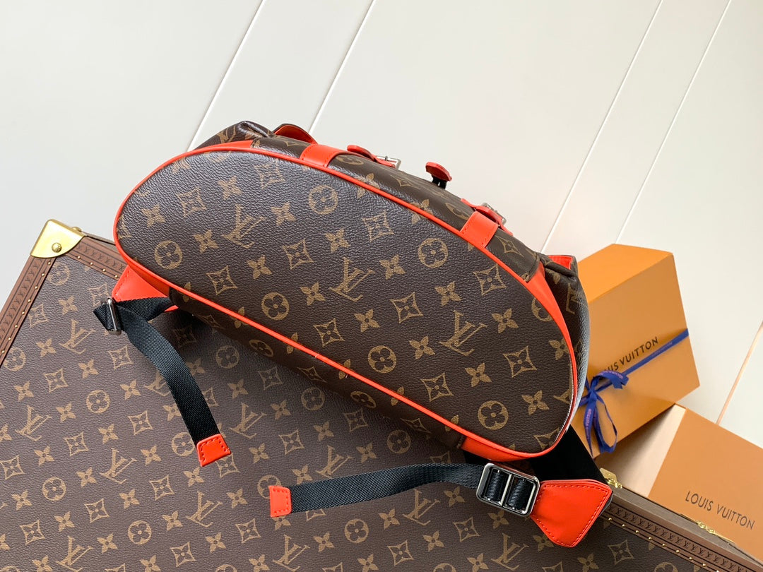 LV 25S CHRISTOPHER BACKPACK 48 IN BROWN AND VERMILION CANVAS MONOGRAM