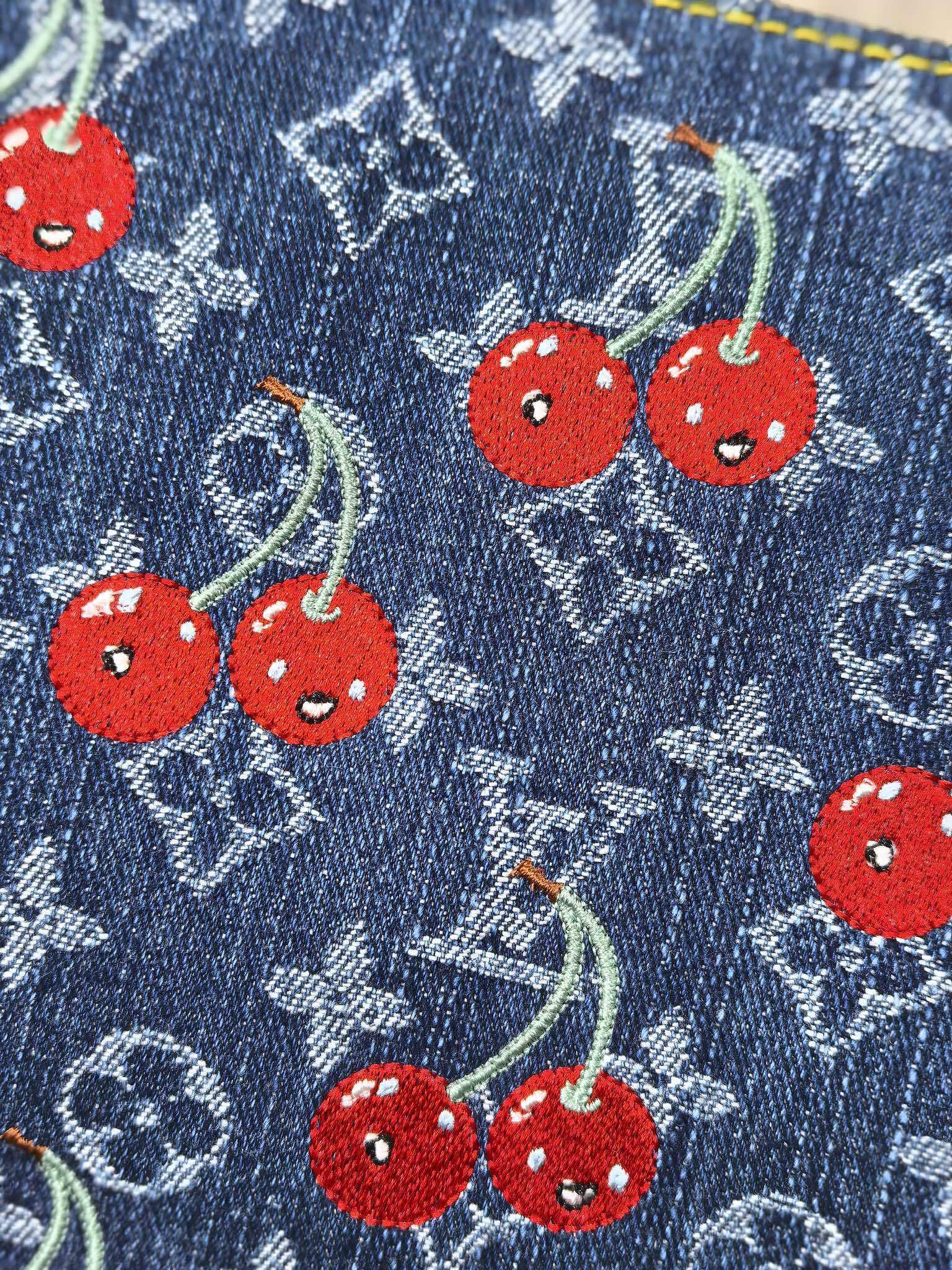 LV 25S COUSSIN BAG 26 IN DARK BLUE DENIM MONOGRAM CHERRY GOLD HARDWARE