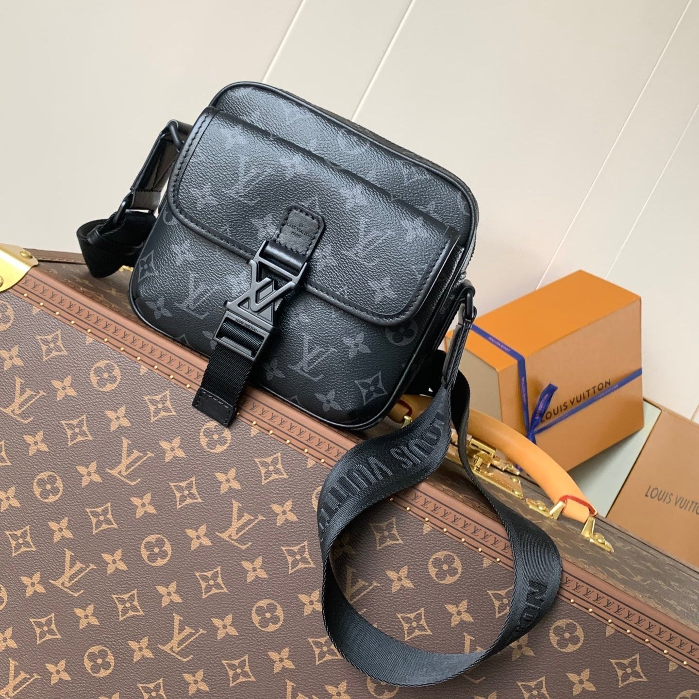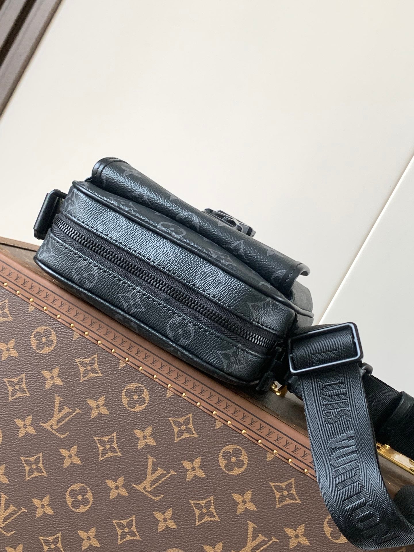 LV 25S GETAWAY MESSENGER BAG 20 IN BLACK MONOGRAM ECLIPSE CANVAS