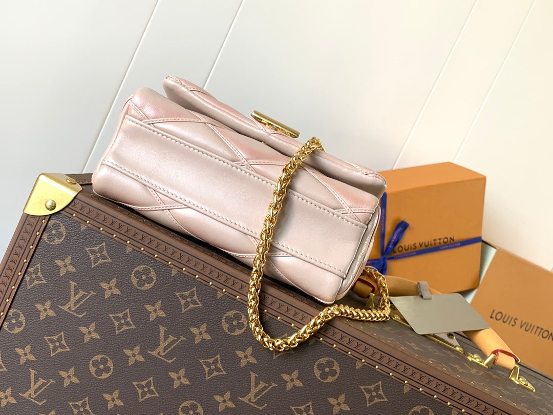 LV 25S GO-14 MM 23 IN LIGHT PINK QUILTED LAMBSKIN GOLD HARDWRE
