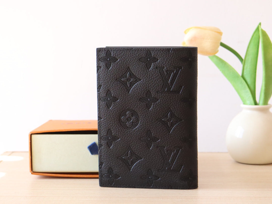 LV 25S PASSPORT HOLDER 14 IN BLACK EMBOSSED MONOGRAM SHADOW CALFSKIN