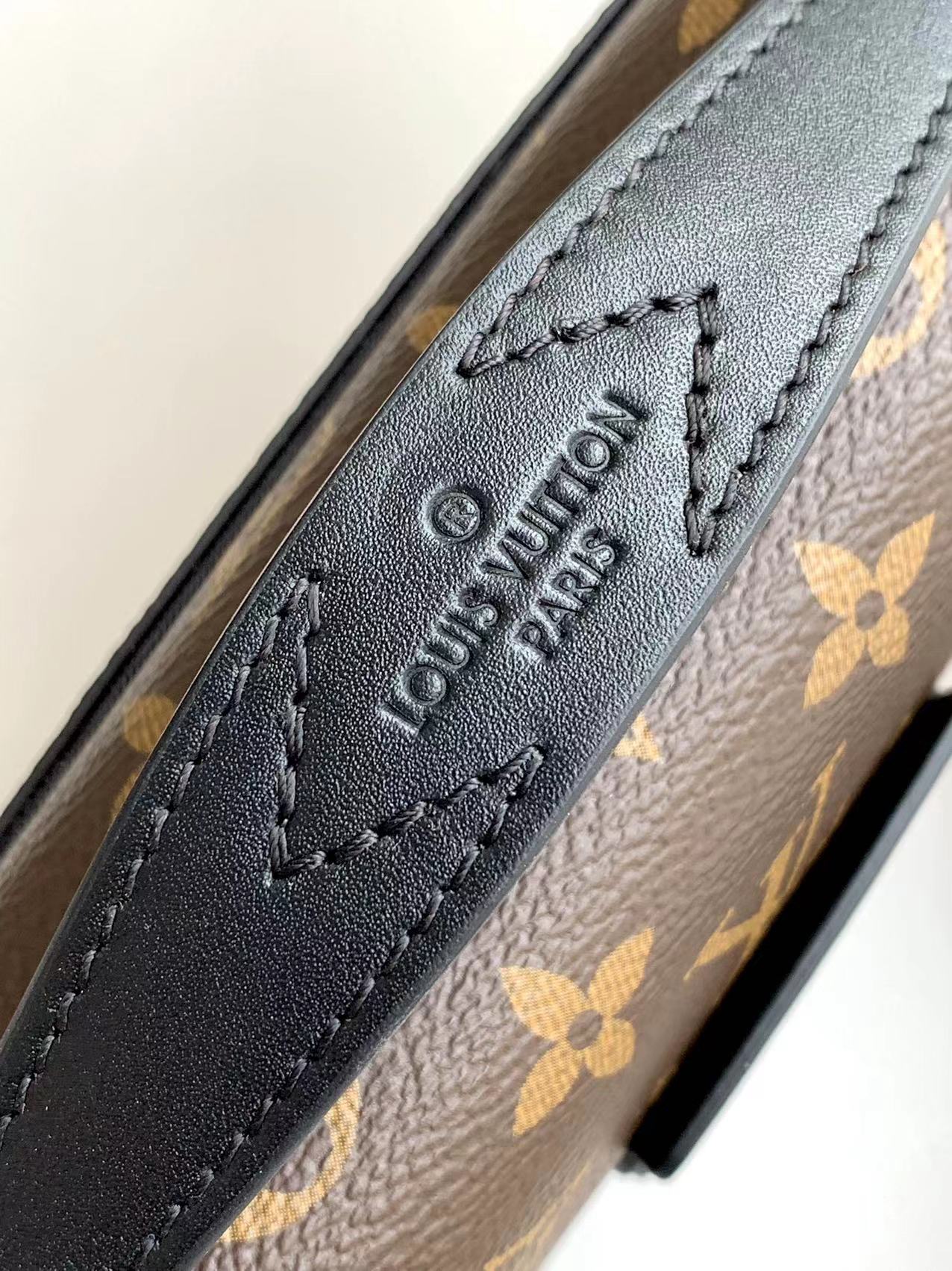 LV 25S S LOCK MESSENGER BAG 21 IN BLACK AND BROWN MONOGRAM MACASSAR CALFSKIN