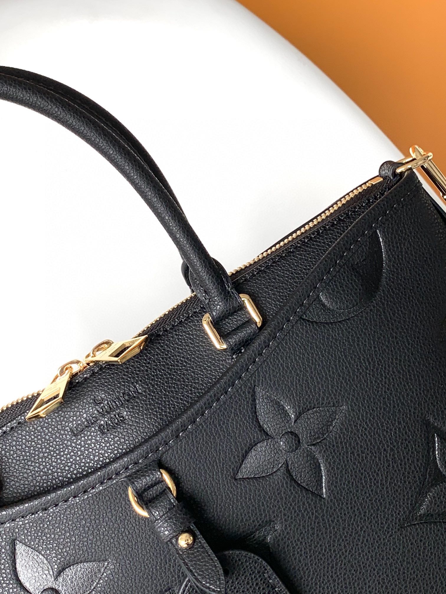 LV 25S TRIANON MM BAG 36 IN BLACK CALFSKIN GOLD HARDWARE