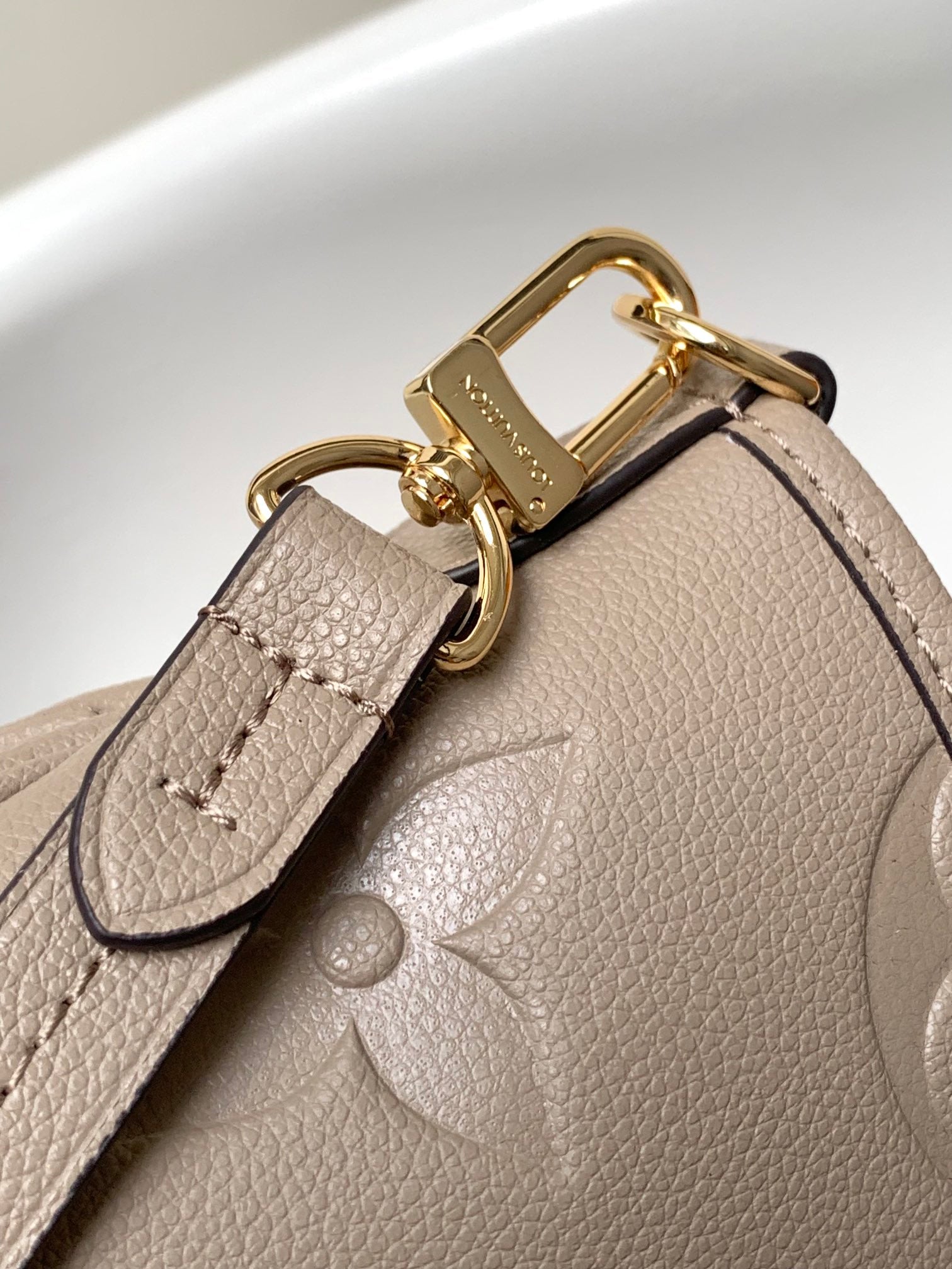 LV 25S TRIANON MM BAG 36 IN WARM TAUPE CALFSKIN GOLD HARDWARE