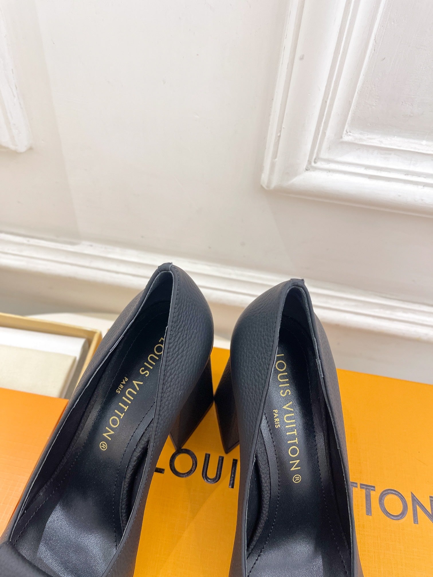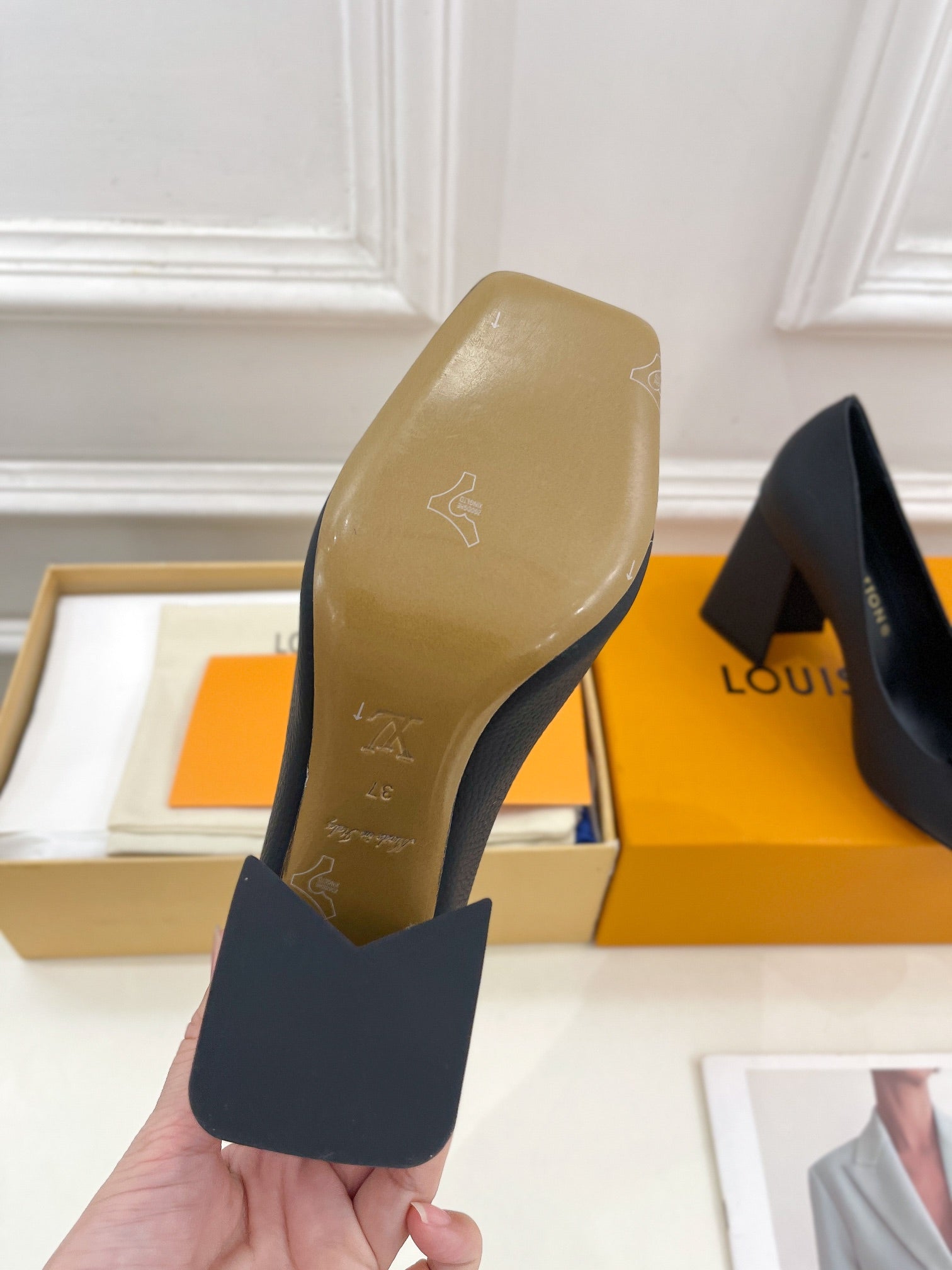 LV BLOCK HEEL PUMPS IN BLACK CALFSKIN