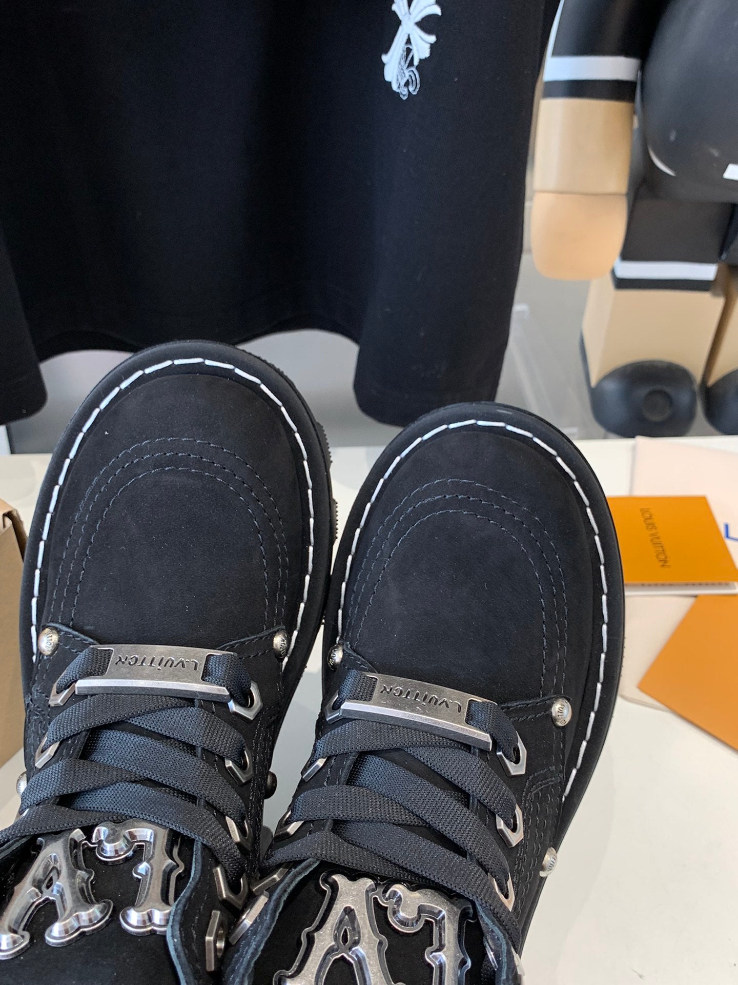 LV CHECKER ANKLE BOOT IN BLACK SUEDE