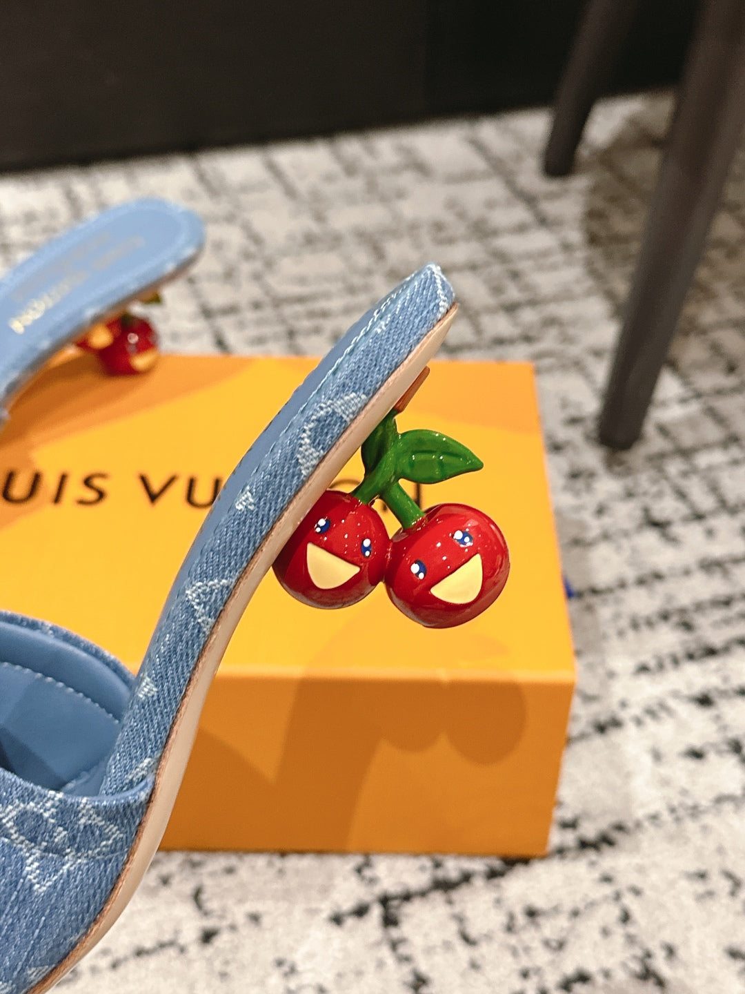 LV CHERRY HIGH HEELS 25S 55 MM IN BLUE DENIM STYLE 5
