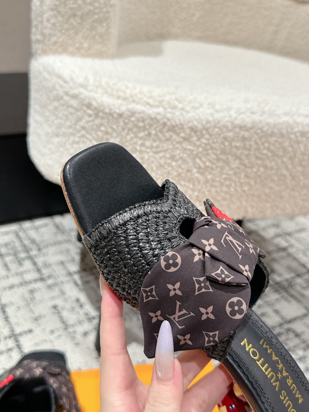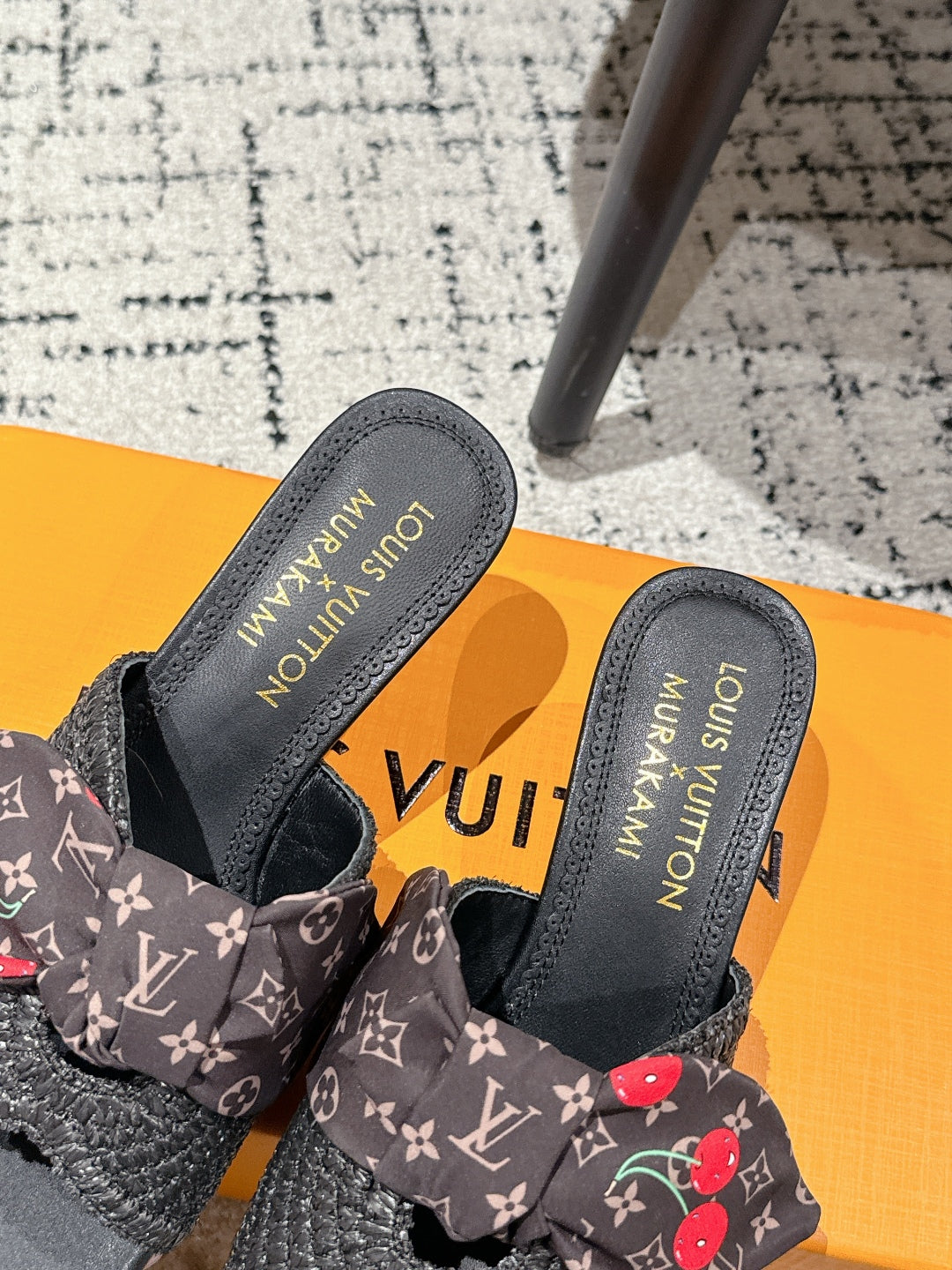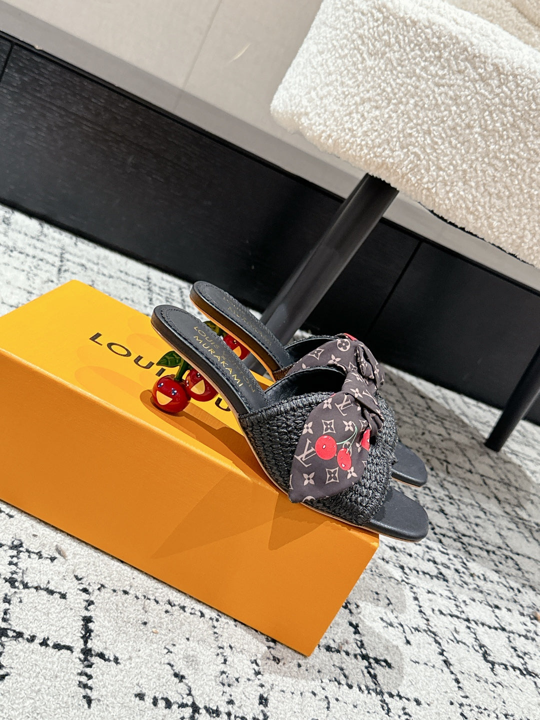 LV CHERRY HIGH HEELS 25S IN BLACK RAFFIA WITH BOW STYLE 14