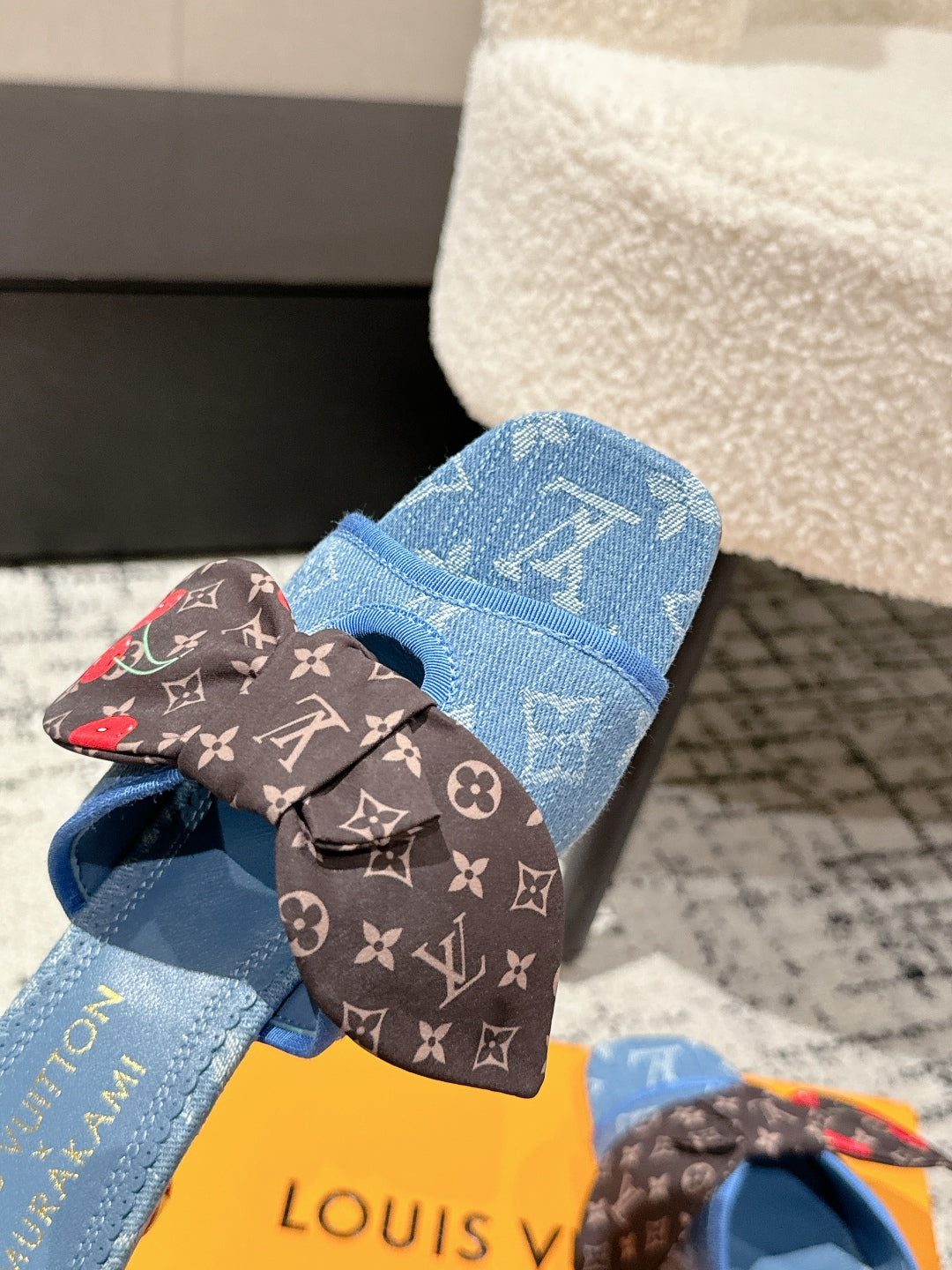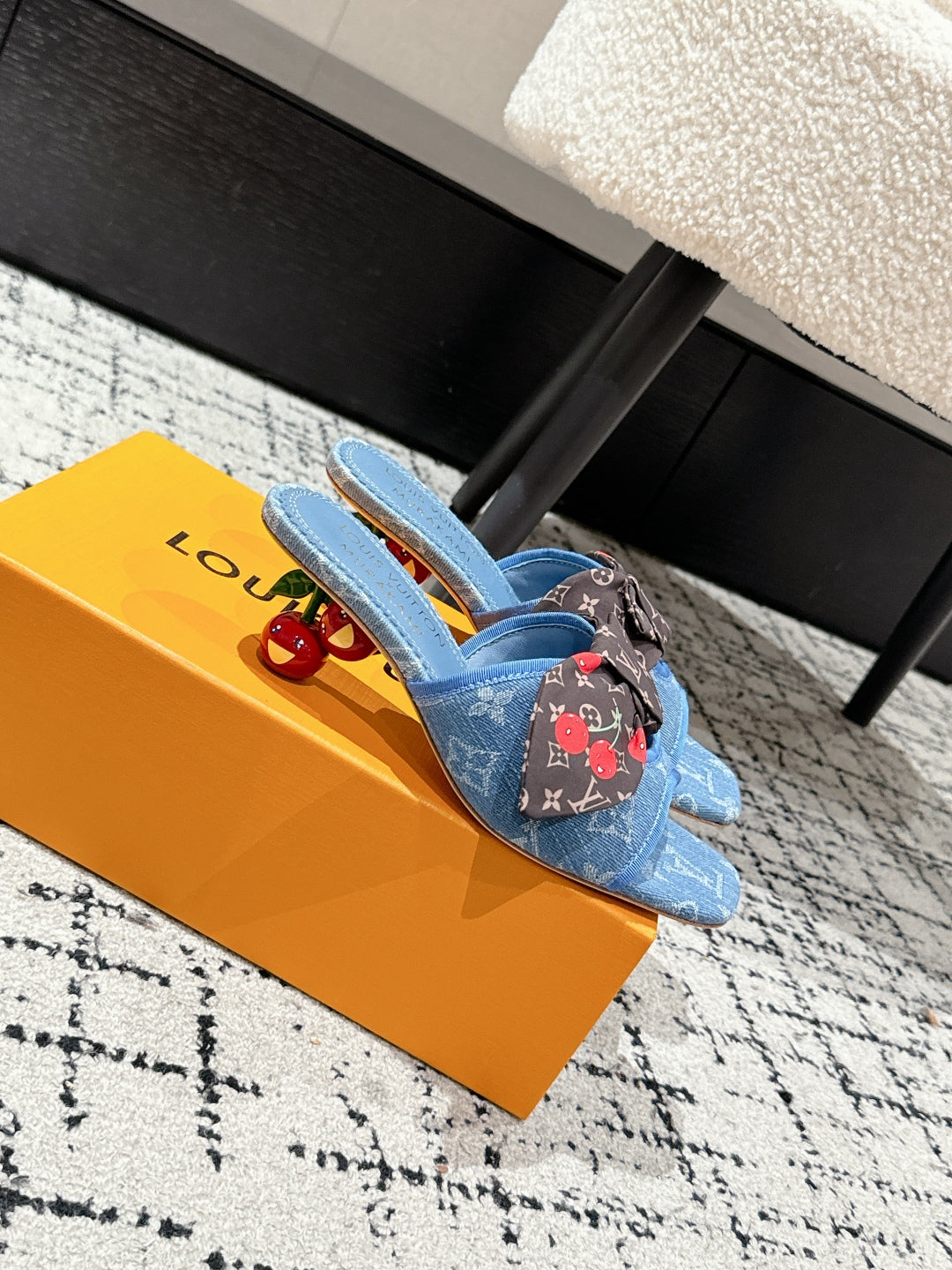 LV CHERRY HIGH HEELS 25S IN BLUE DENIM WITH BOW STYLE 8