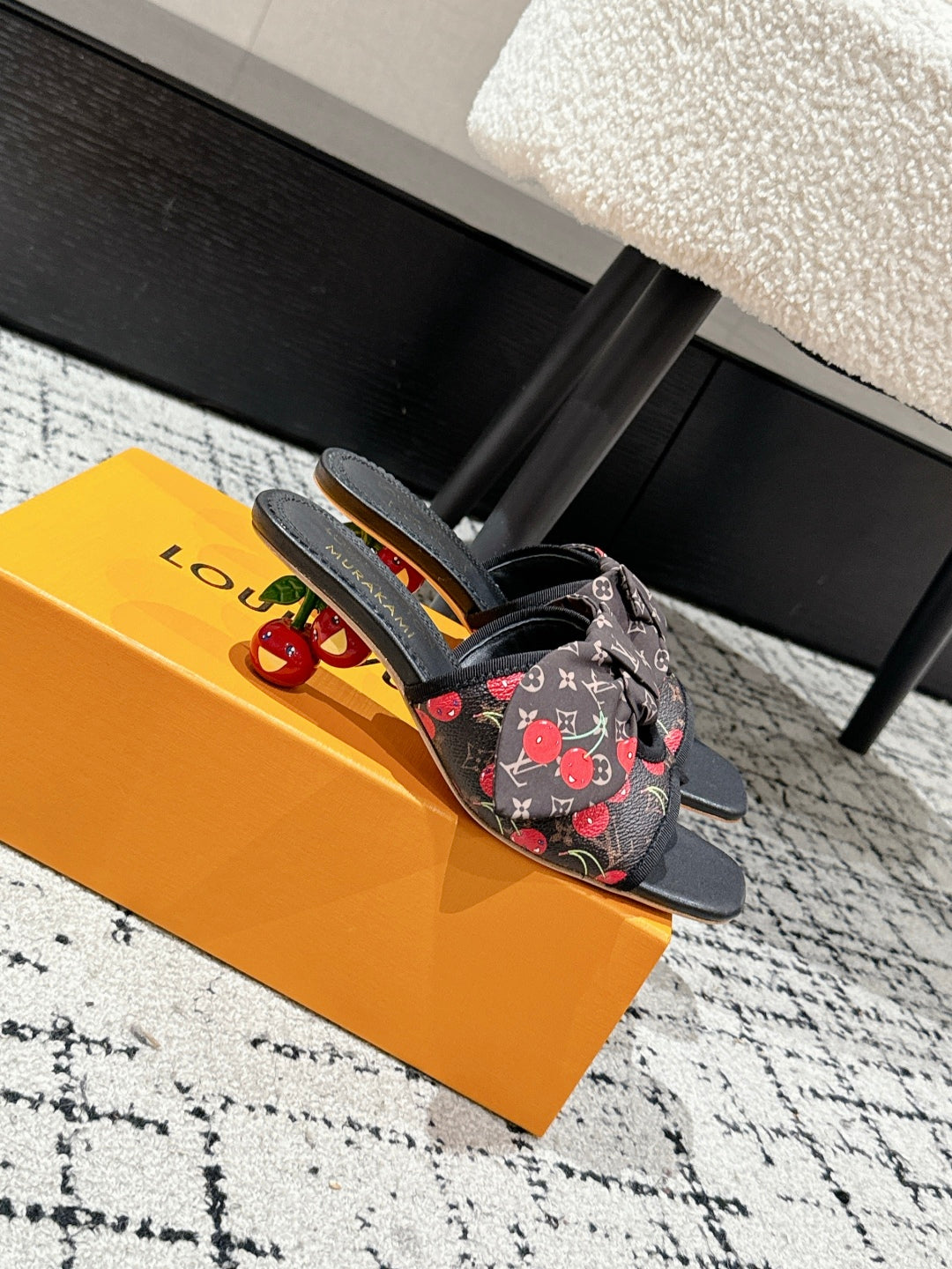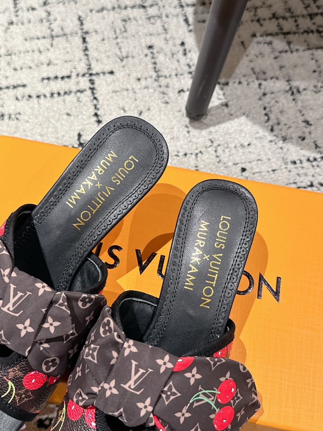 LV CHERRY HIGH HEELS 25S IN DARK BROWN AND BLACK CALFSKIN WITH BOW STYLE 10