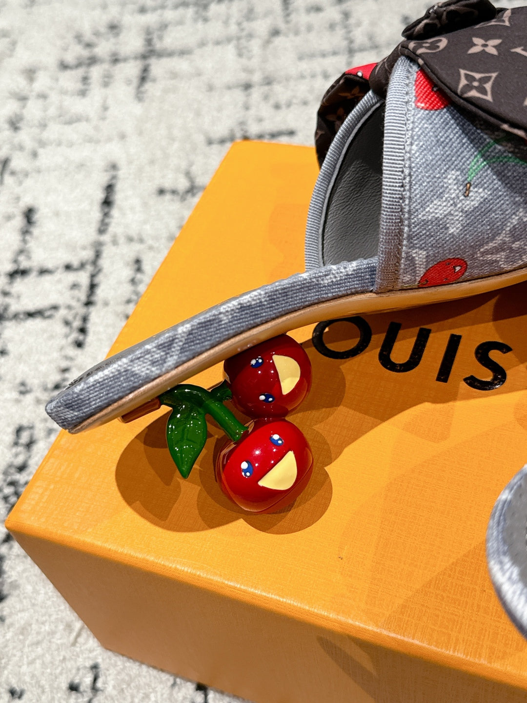 LV CHERRY HIGH HEELS 25S IN GREY DENIM WITH BOW STYLE 1