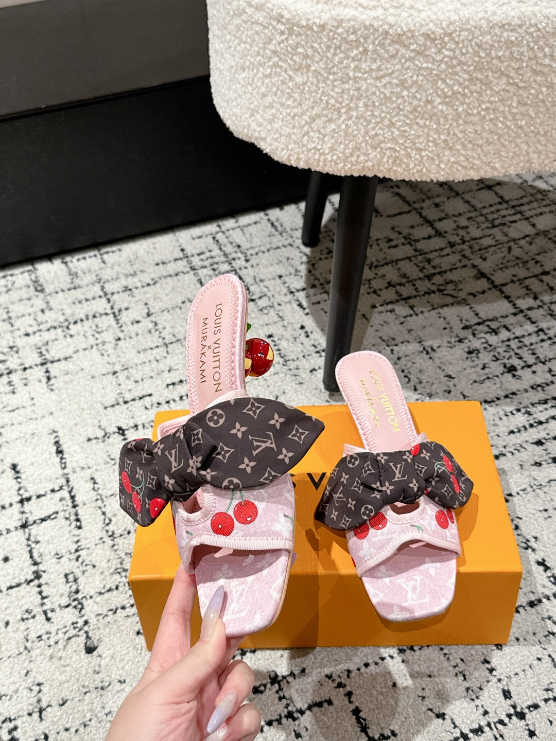 LV CHERRY HIGH HEELS 25S IN LIGHT PINK DENIM WITH BOW STYLE 4