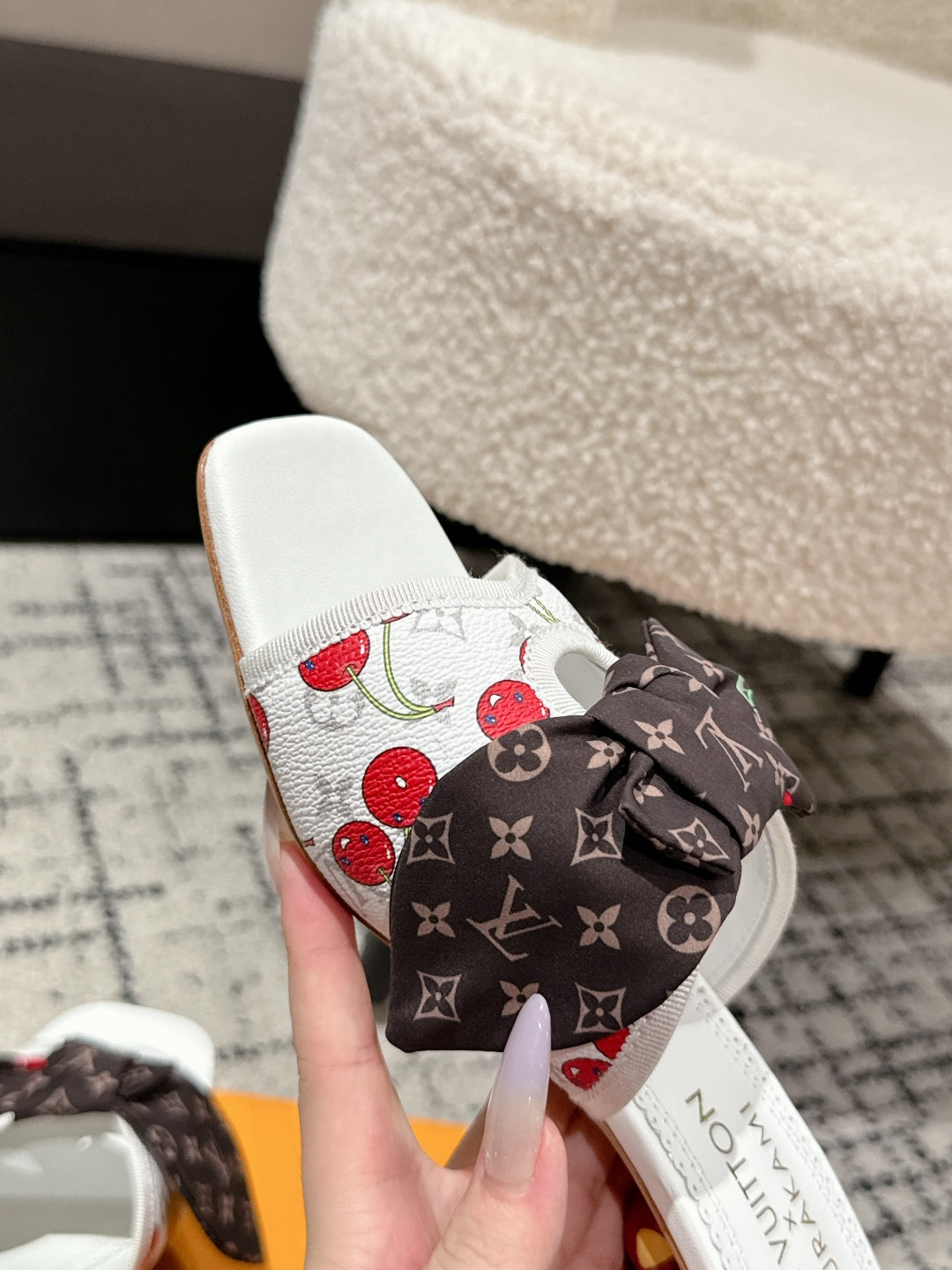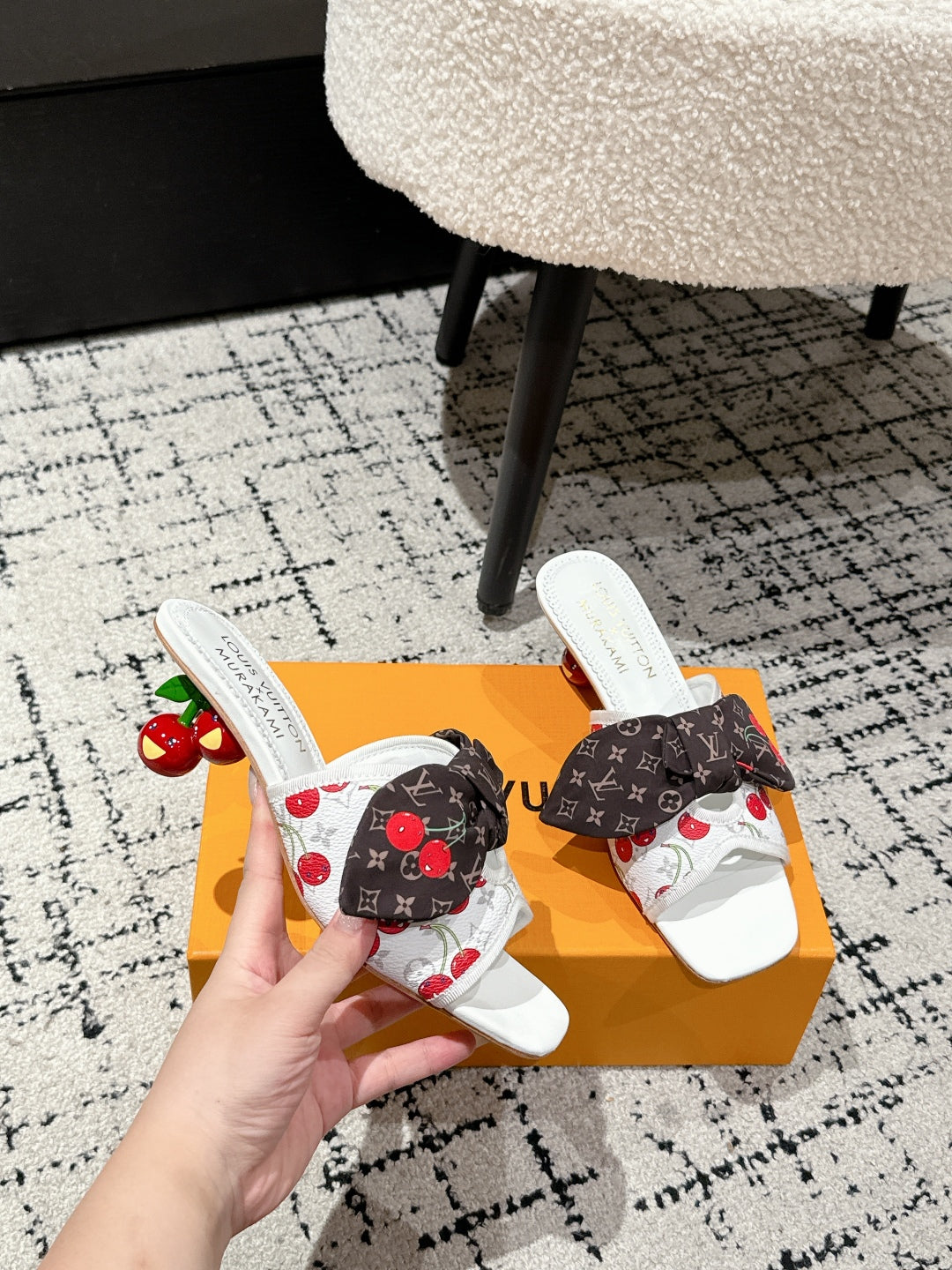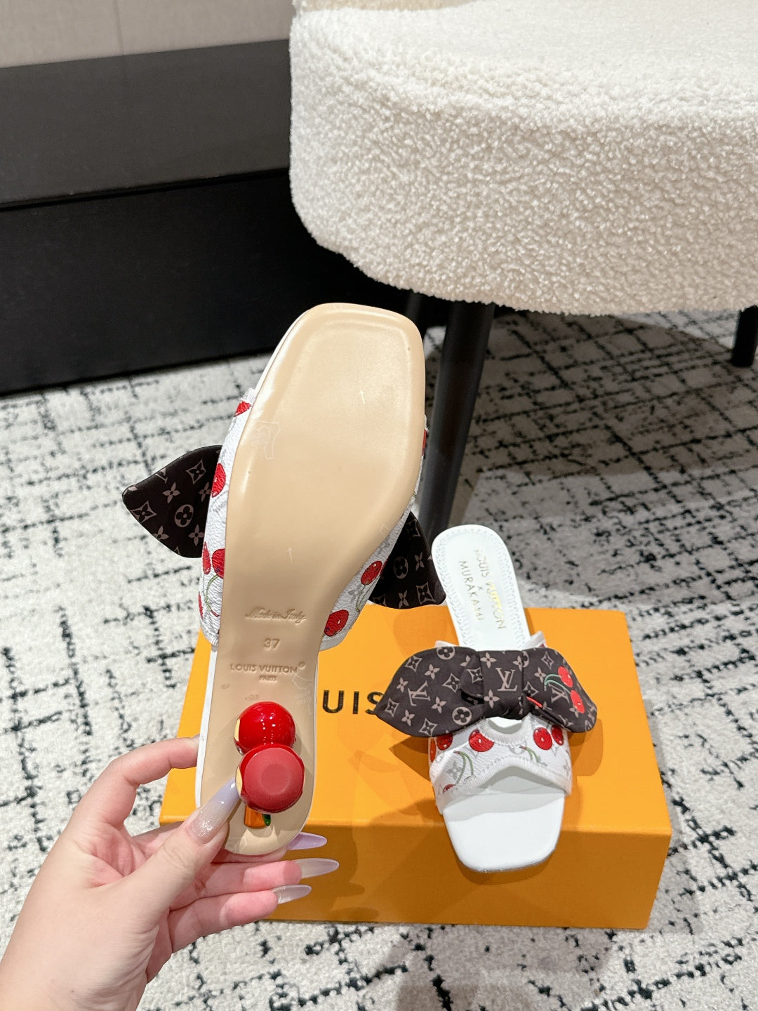 LV CHERRY HIGH HEELS 25S IN WHITE CALFSKIN WITH BOW STYLE 9