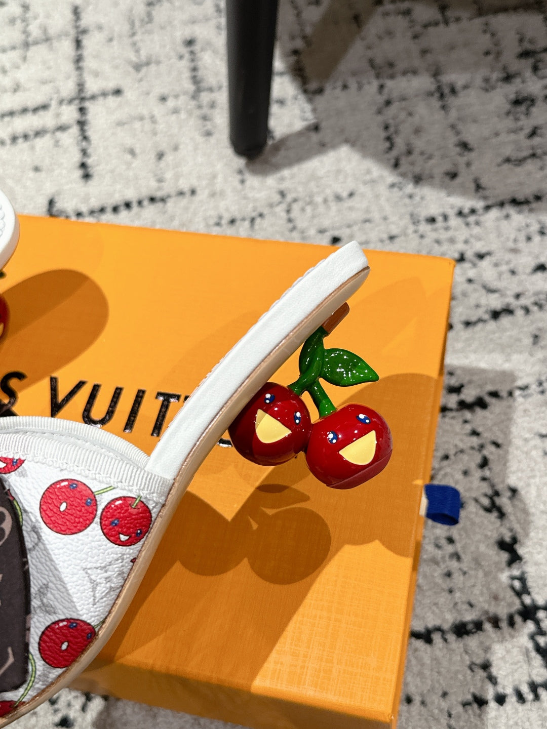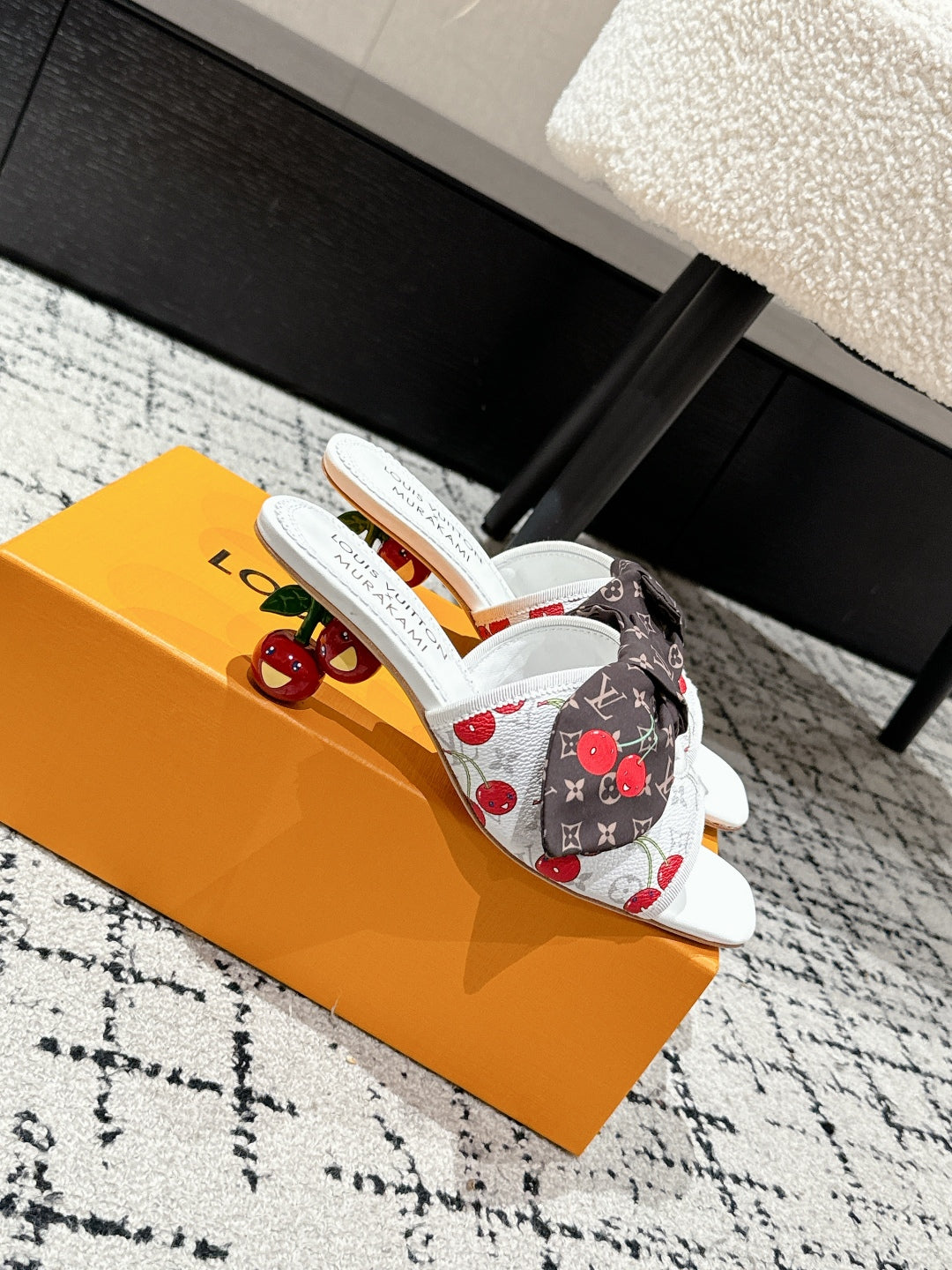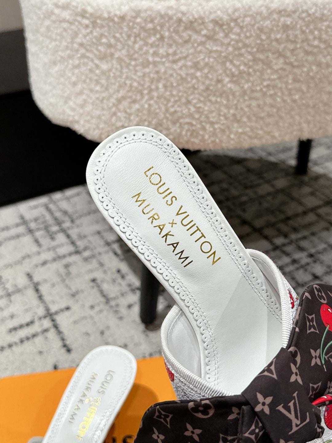 LV CHERRY HIGH HEELS 25S IN WHITE CALFSKIN WITH BOW STYLE 9