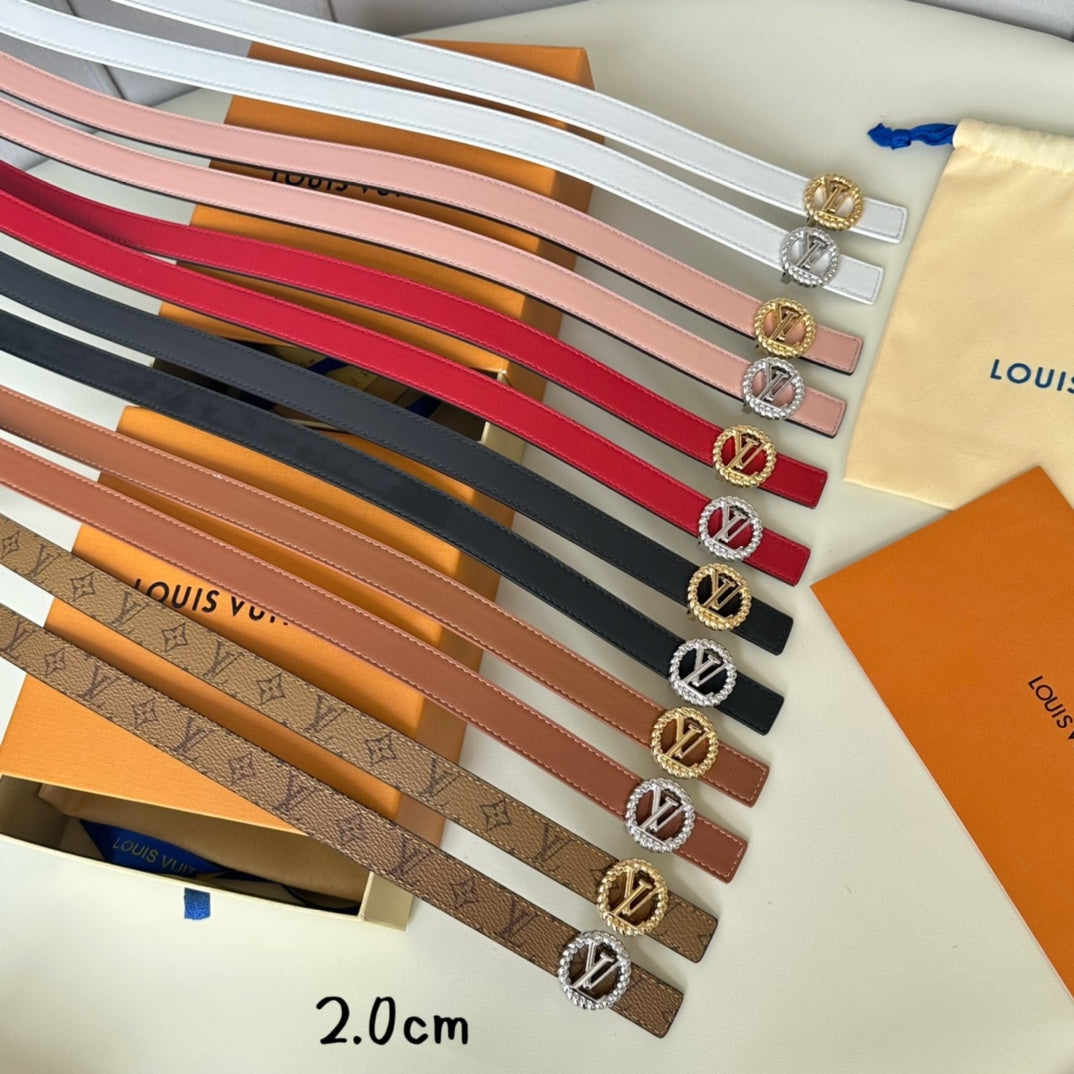LV Circle Nautical 20mm Reversible Belt Gold Buckle Pink Brown Lambskin