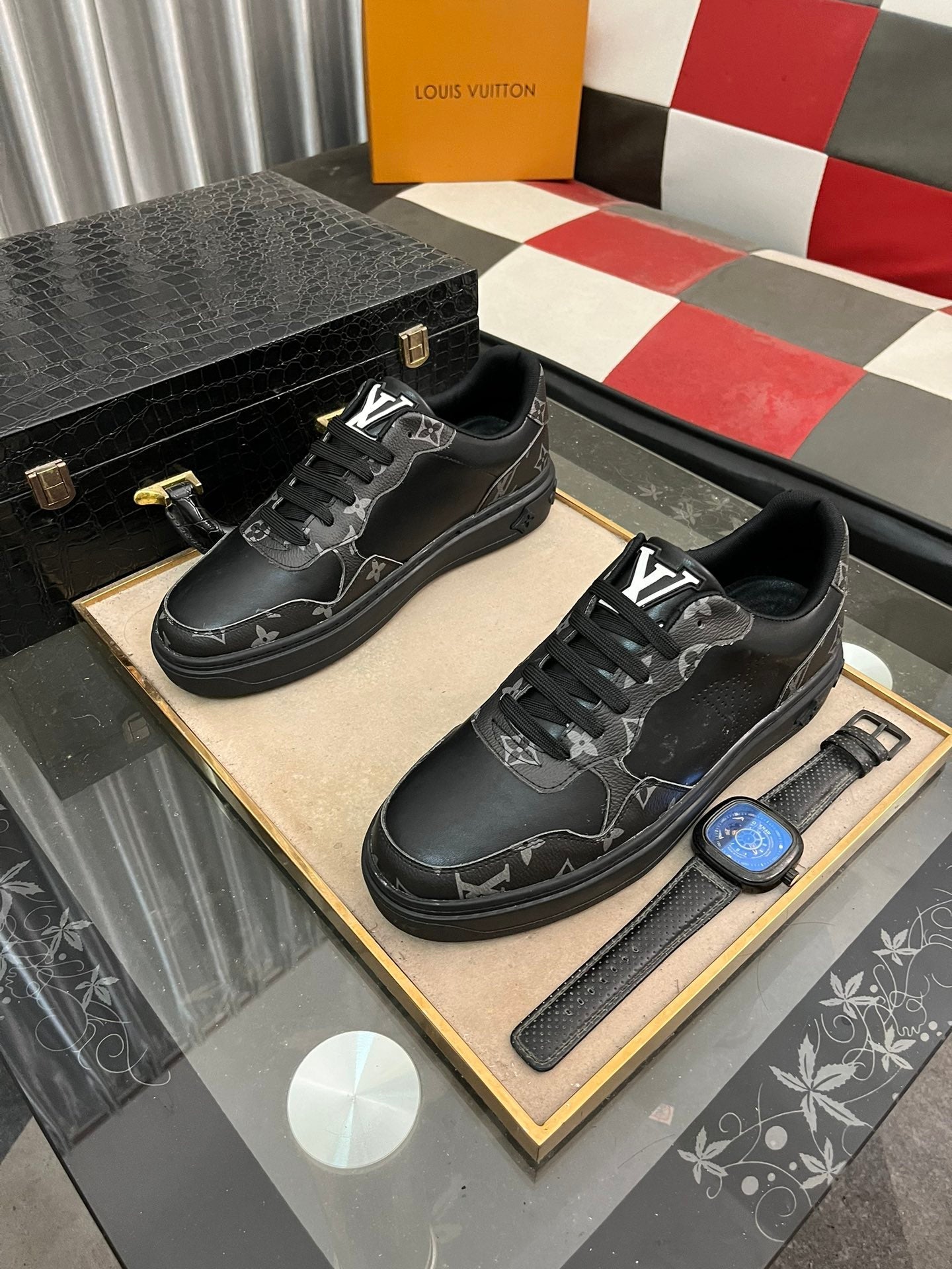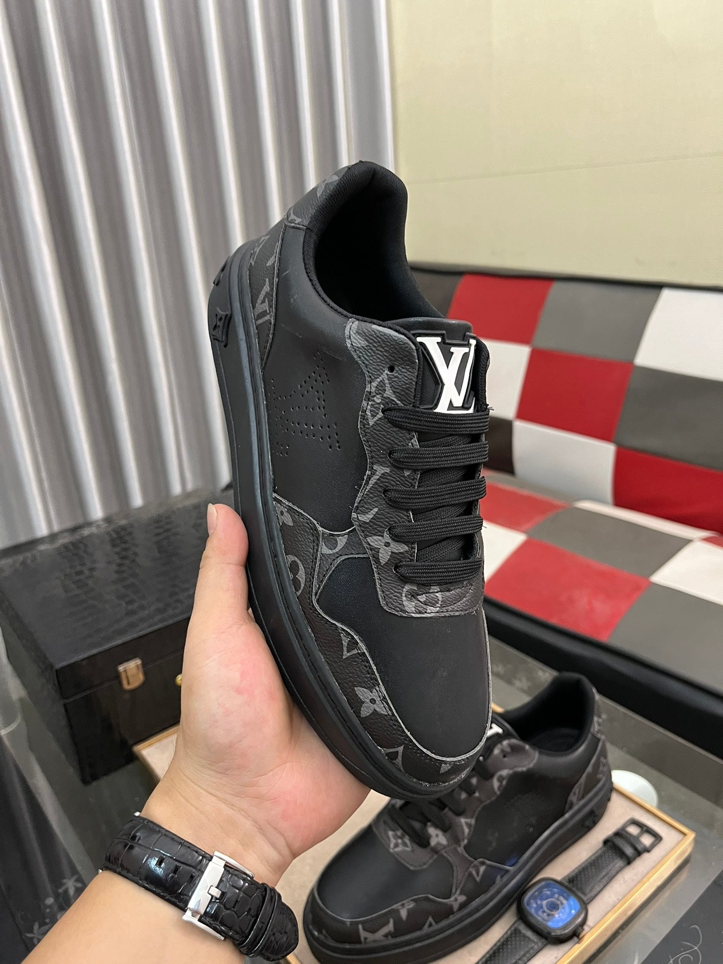 LV CLASSIC TRAINER SHOES IN BLACK CALFKSIN AND SUEDE