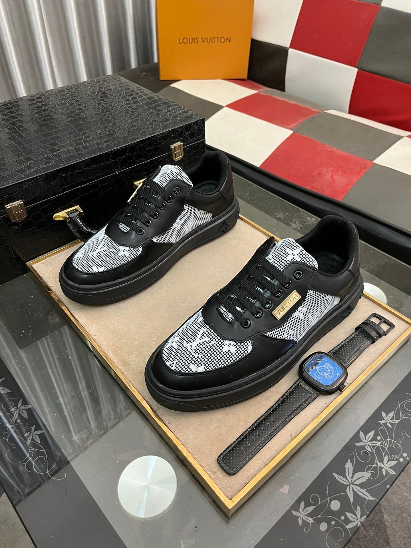 LV CLASSIC TRAINERS WHITE MESH AND BLACK CALFSKIN