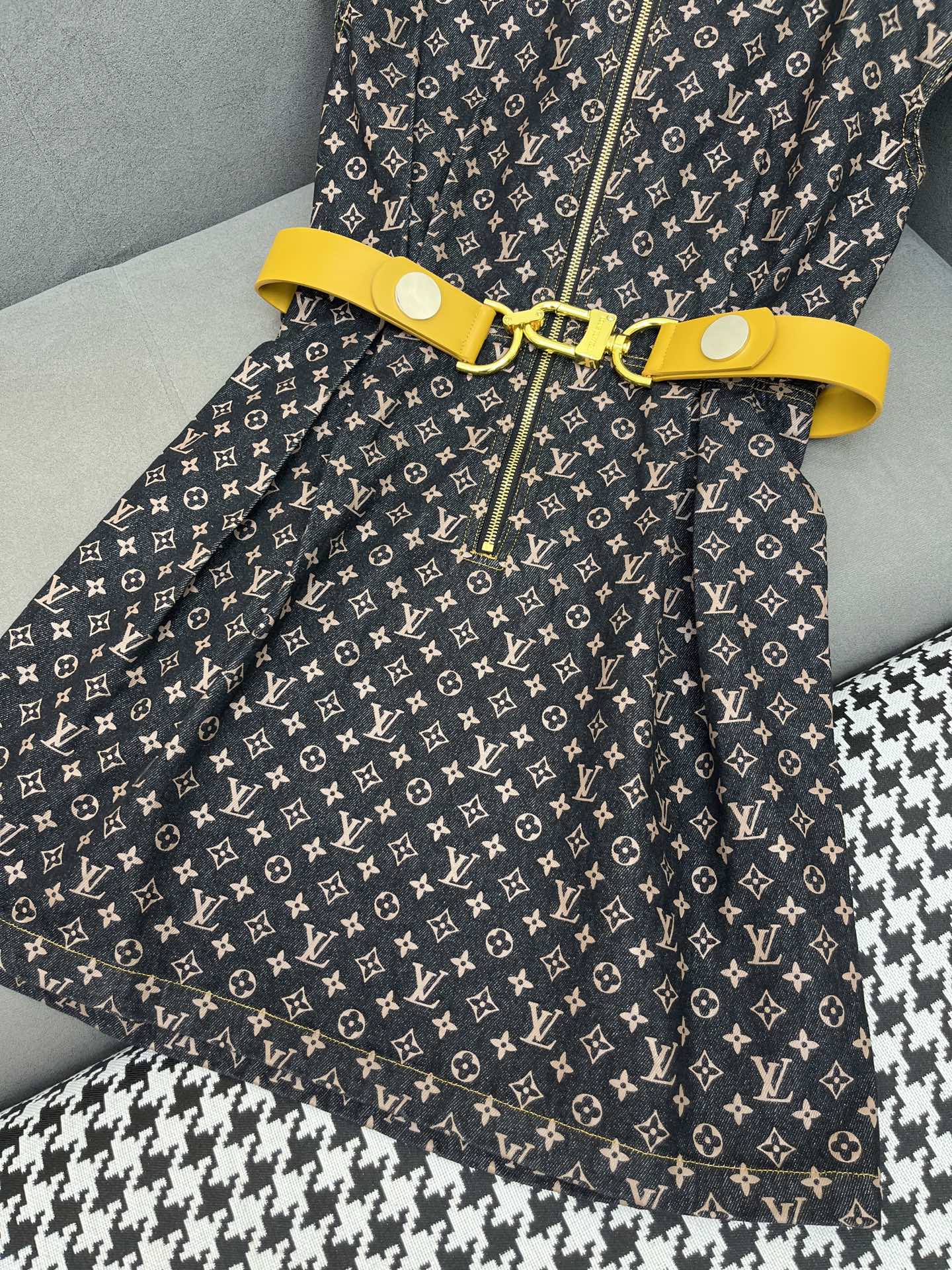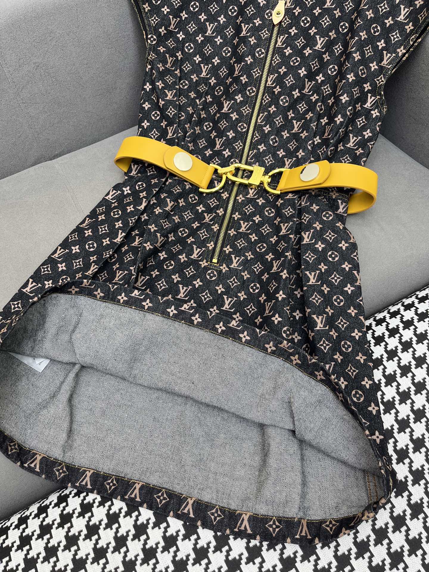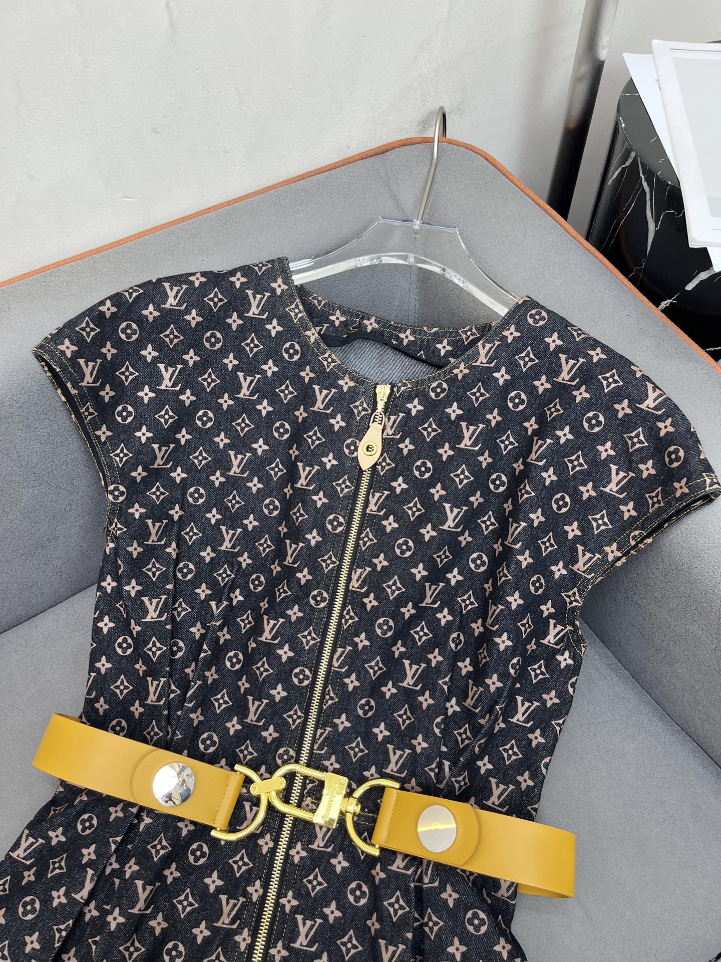 LV DENIM DRESS WITH FRONT CENTER ZIPPER