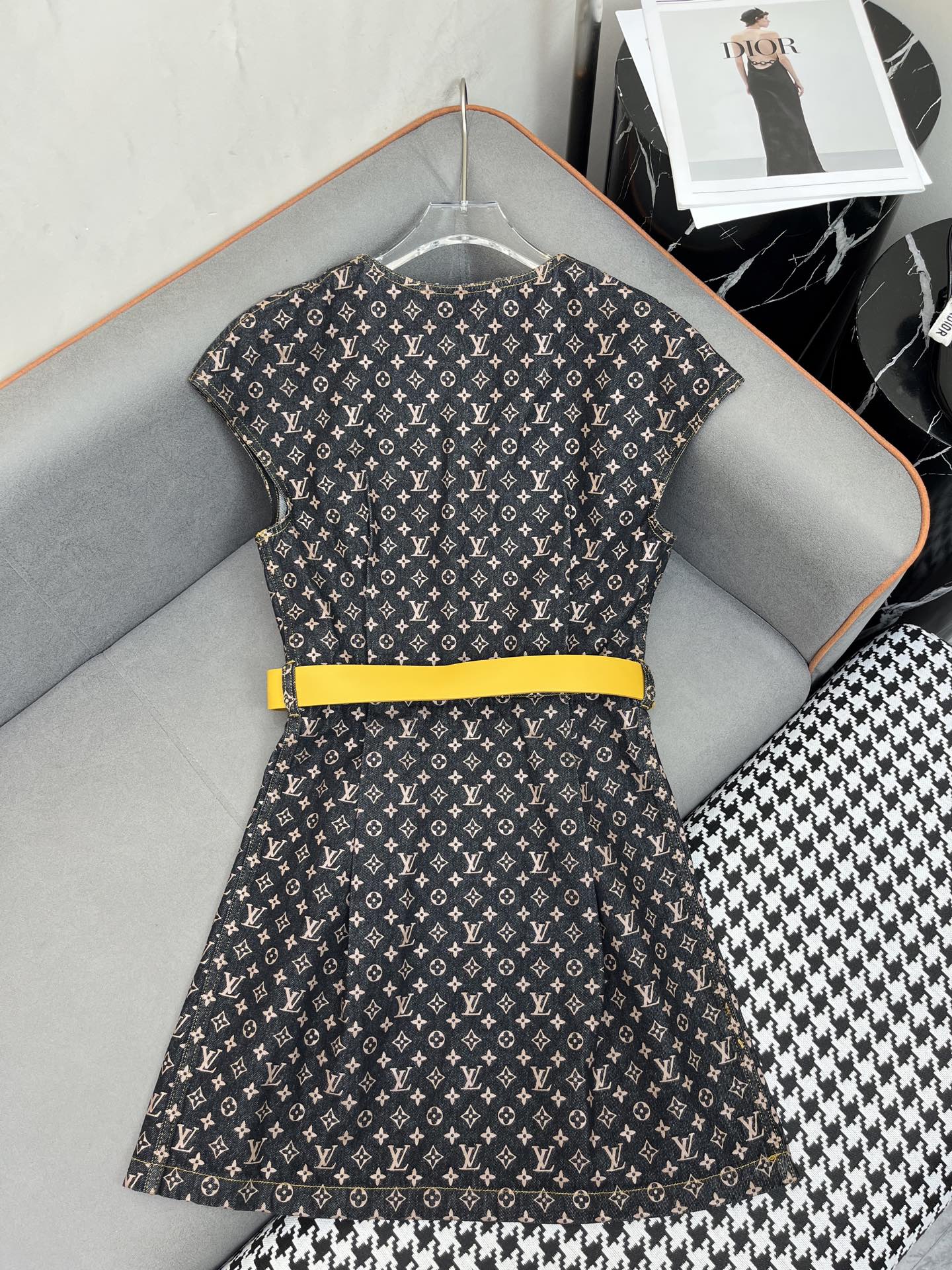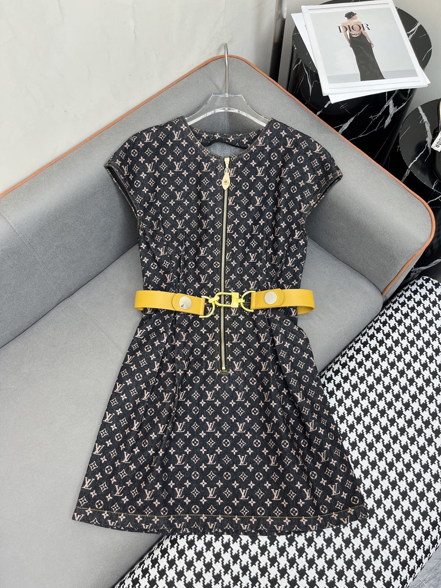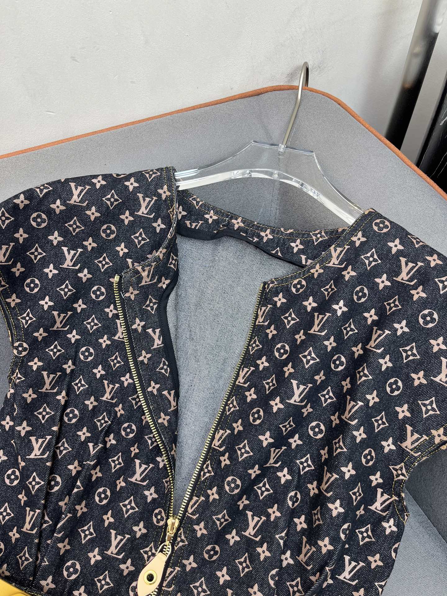 LV DENIM DRESS WITH FRONT CENTER ZIPPER