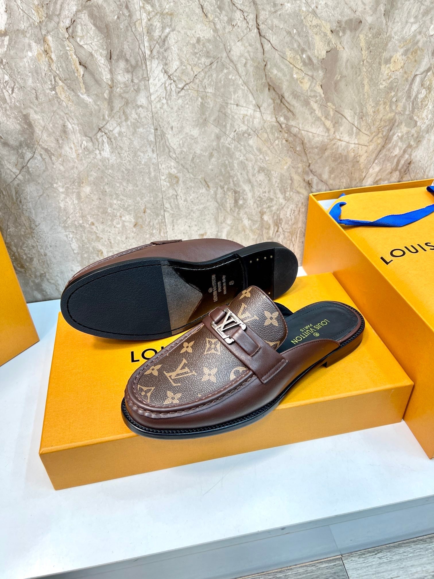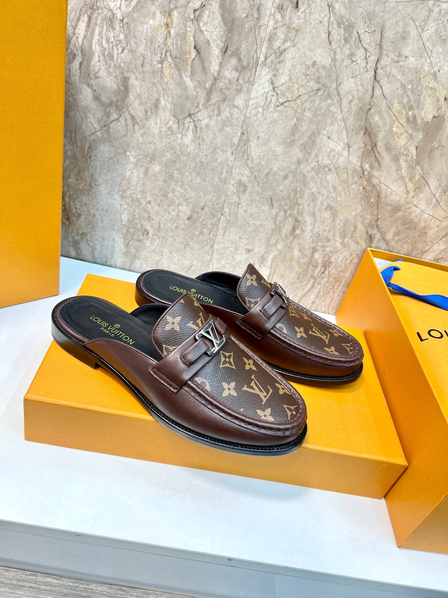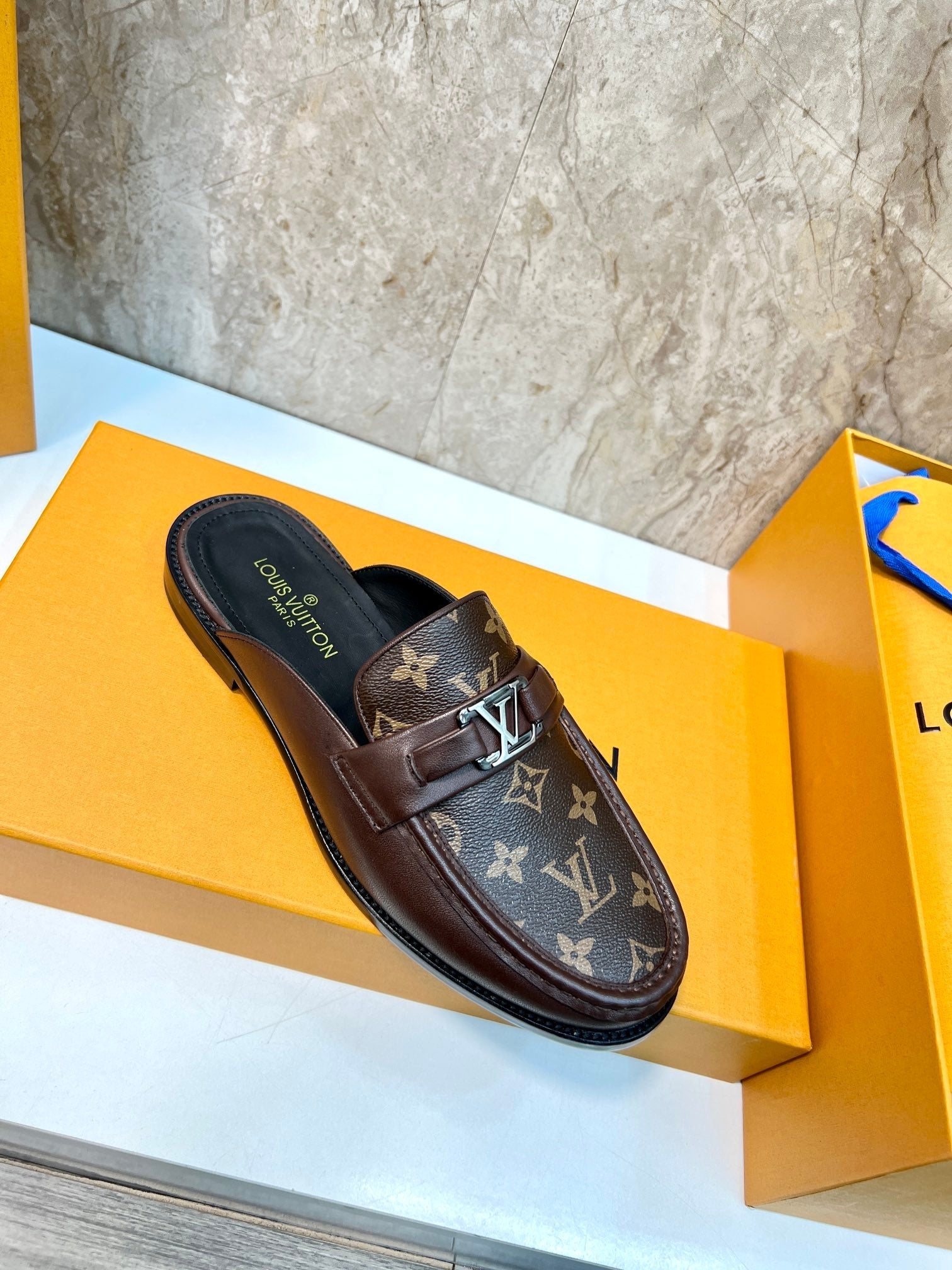 LV EASY MULE IN BROWN CHOCOLATE MONOGRAM CALFSKIN