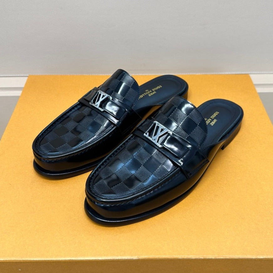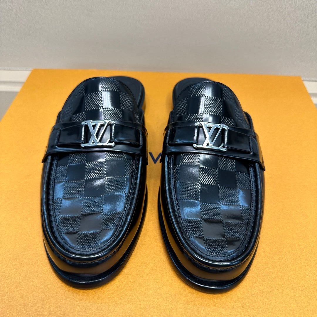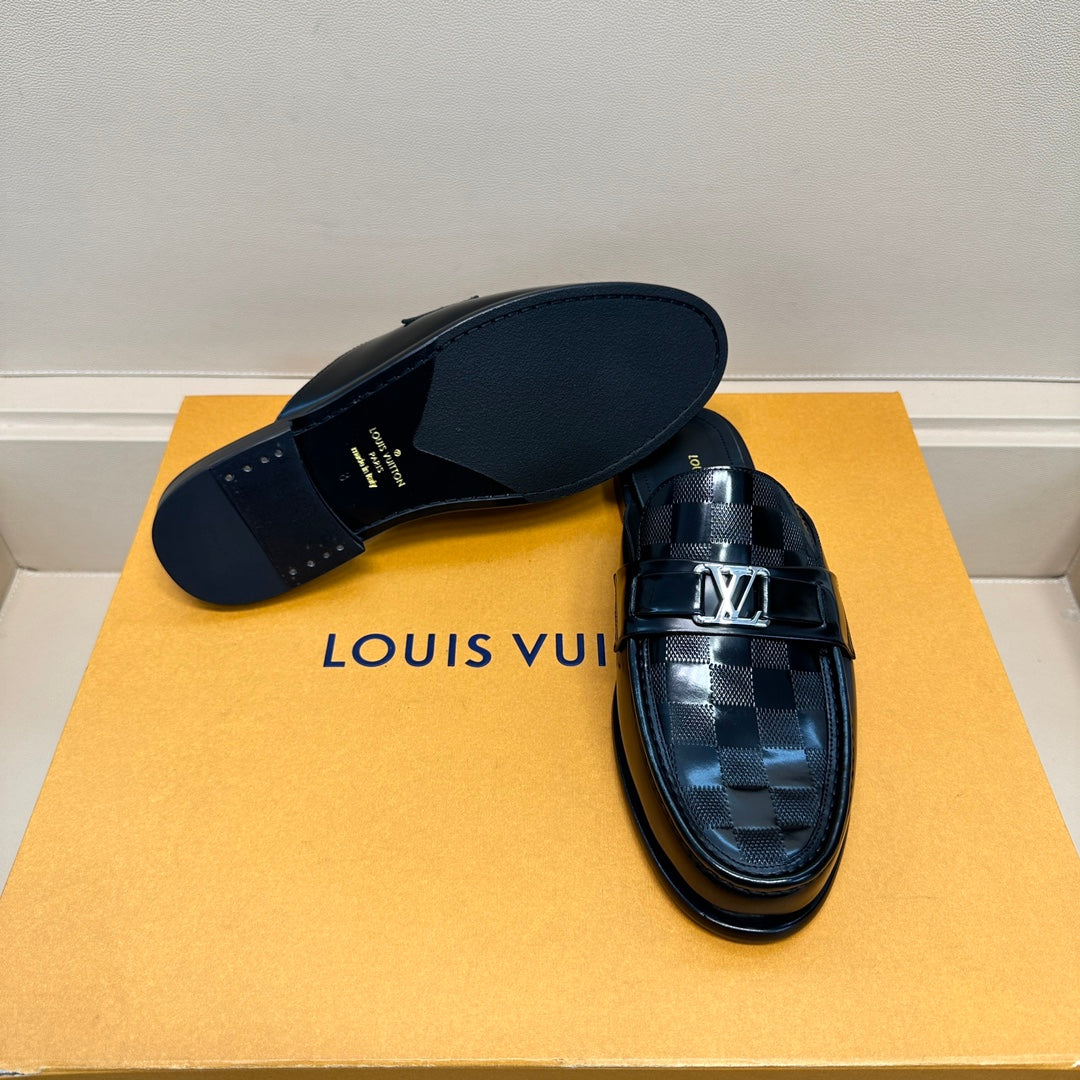 LV EASY MULE IN DAMIER BLACK CALFSKIN