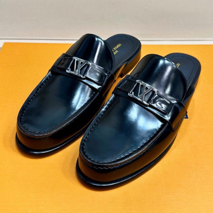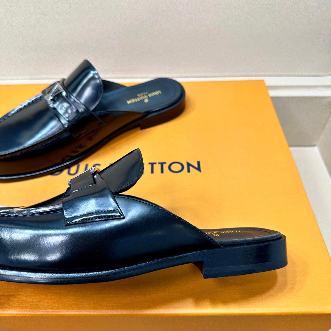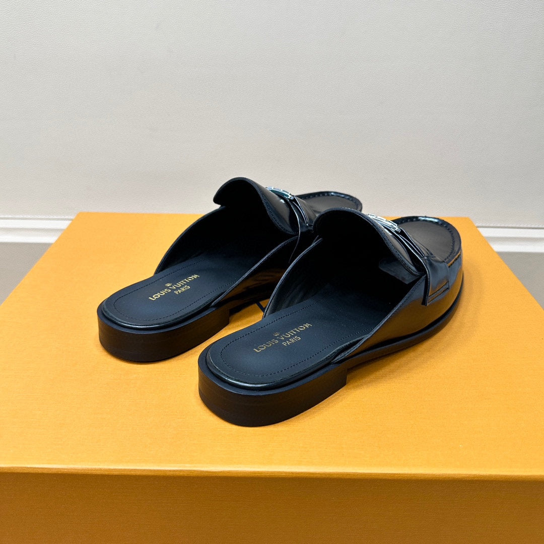 LV EASY MULE IN GLOSSY BLACK CALFSKIN