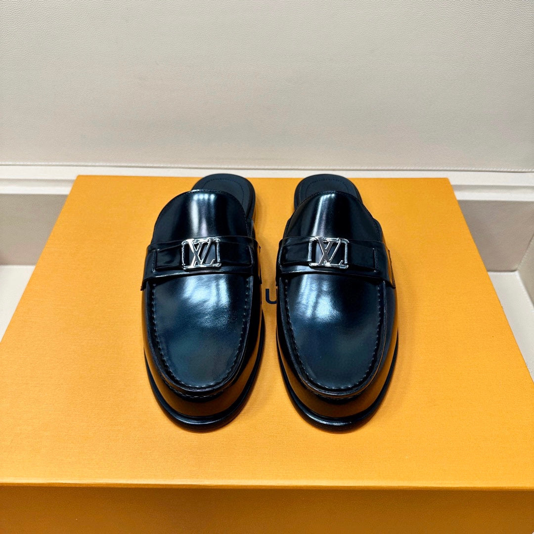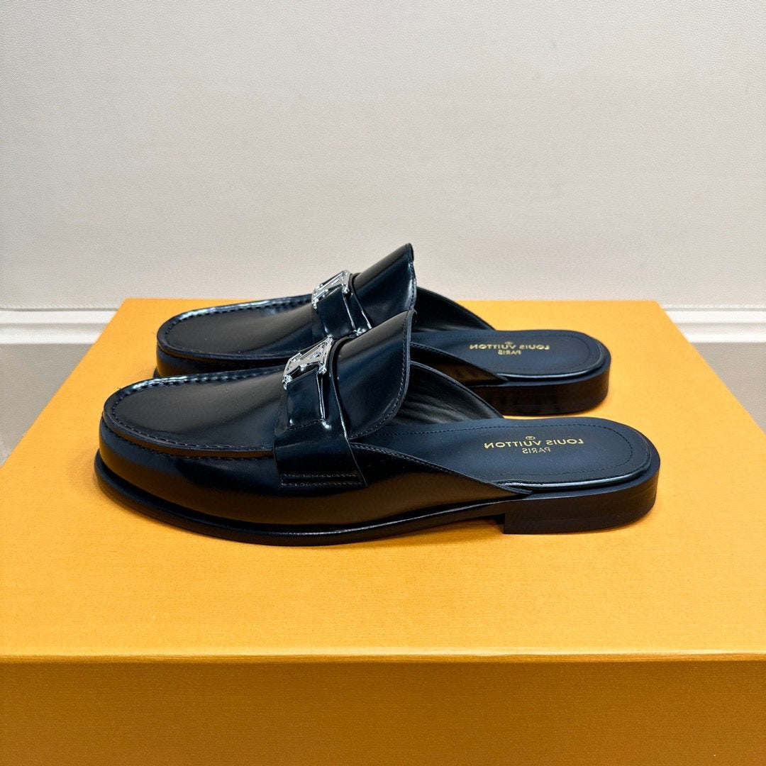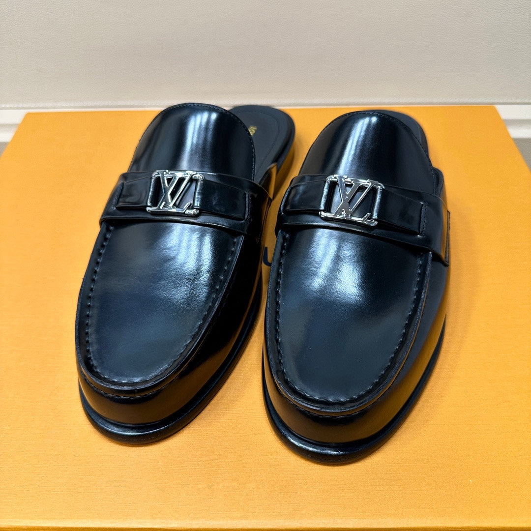 LV EASY MULE IN GLOSSY BLACK CALFSKIN