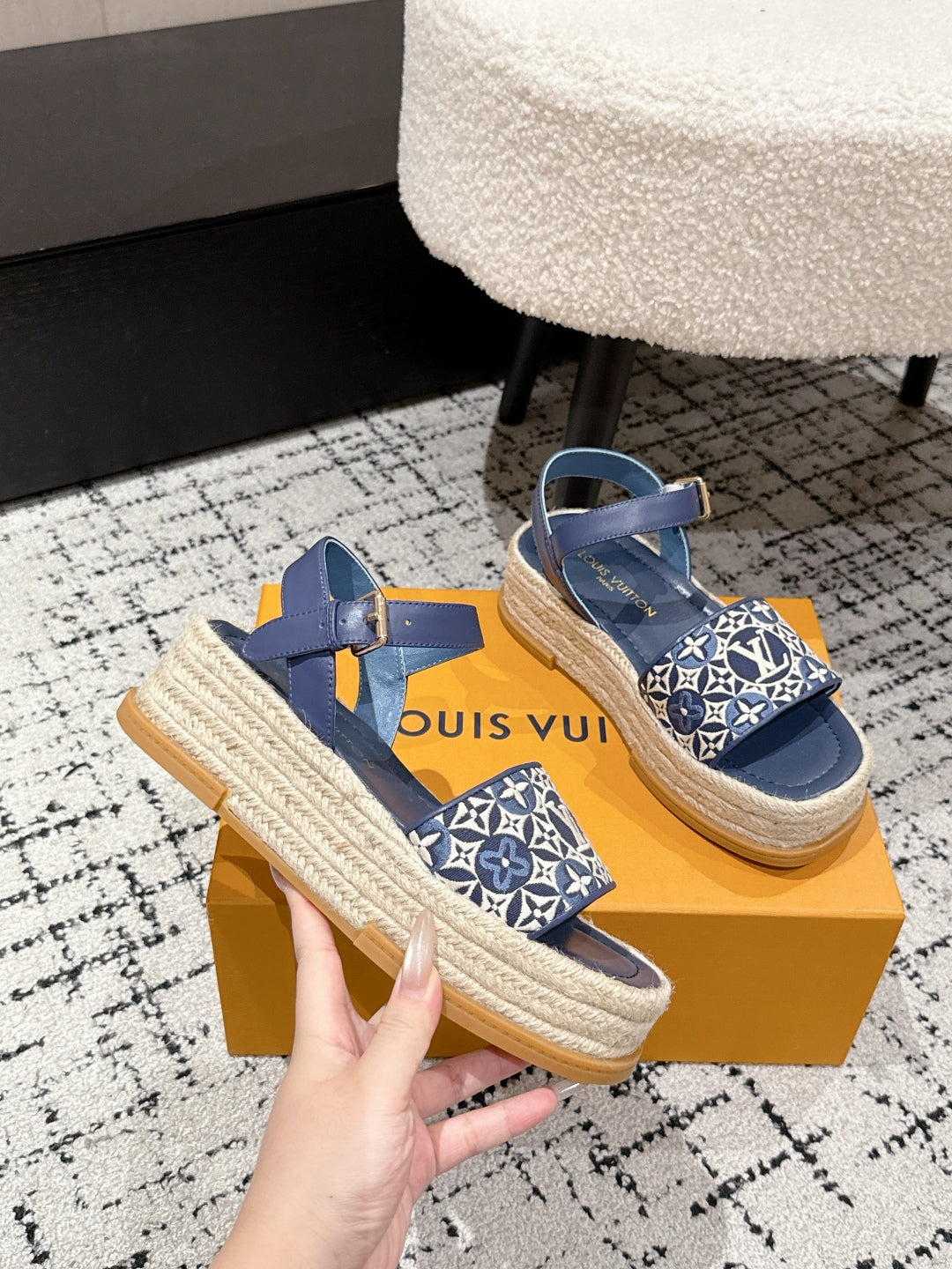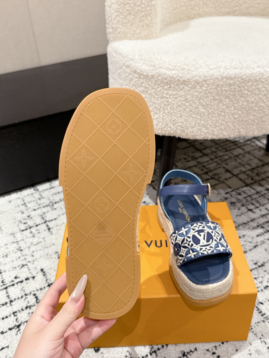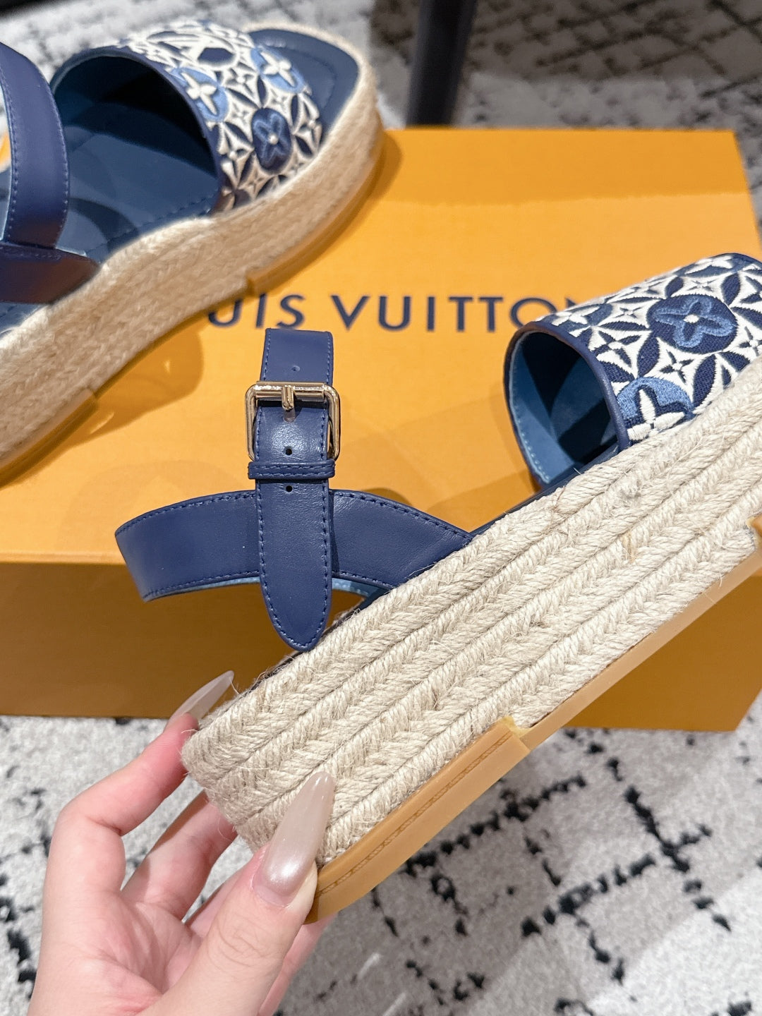 LV PLATFORM ESPADRILLE SANDALS 25S IN DARK BLUE FABRIC