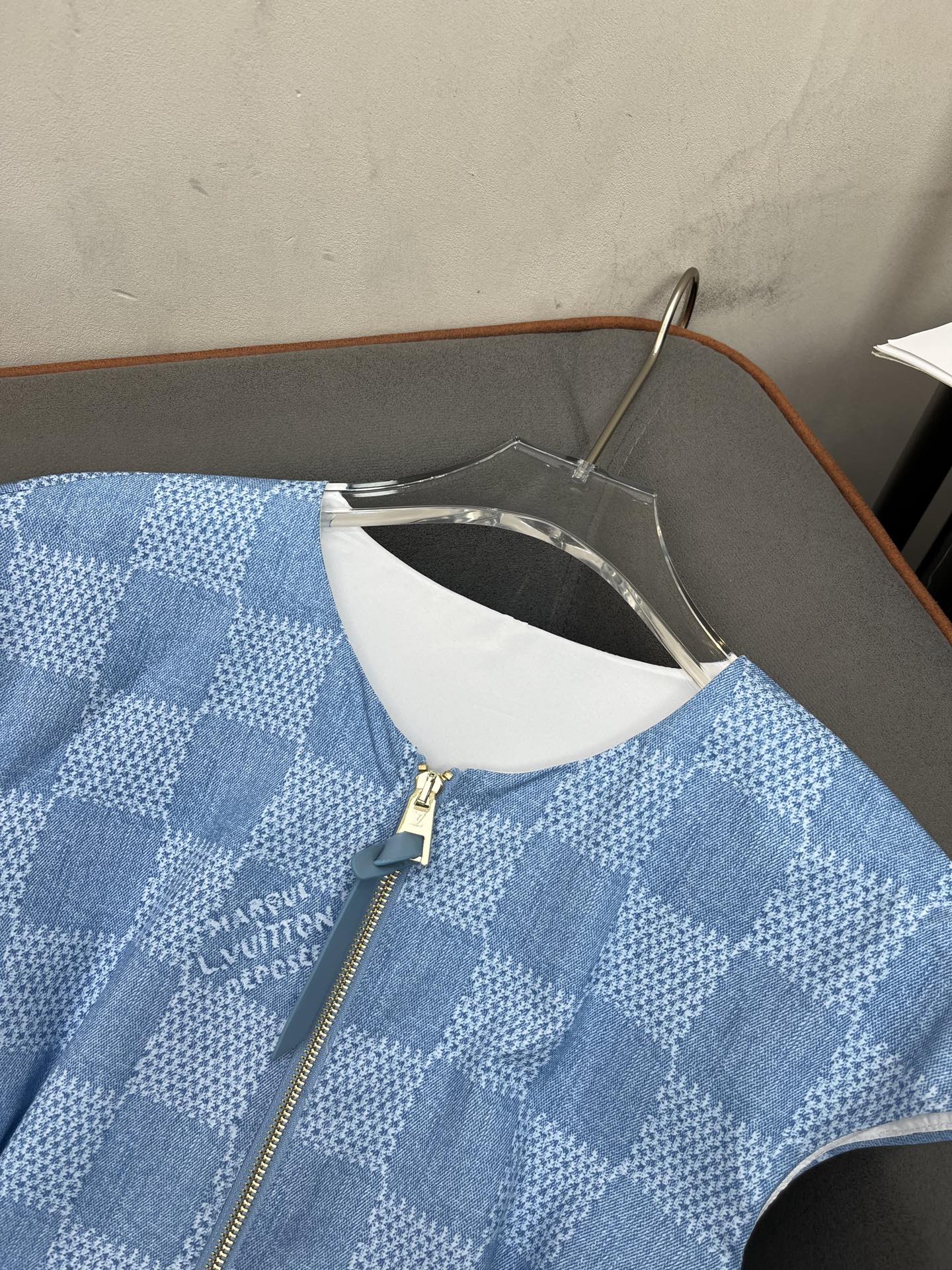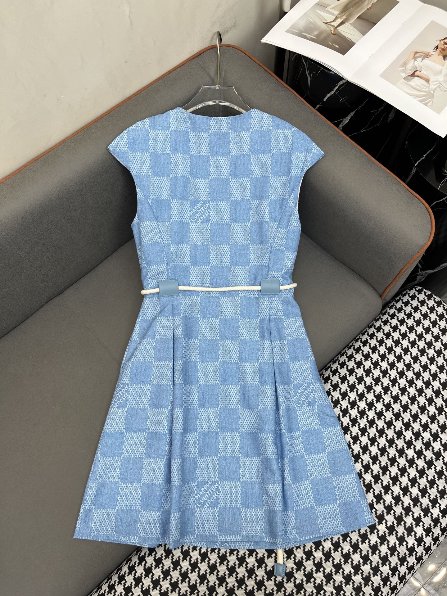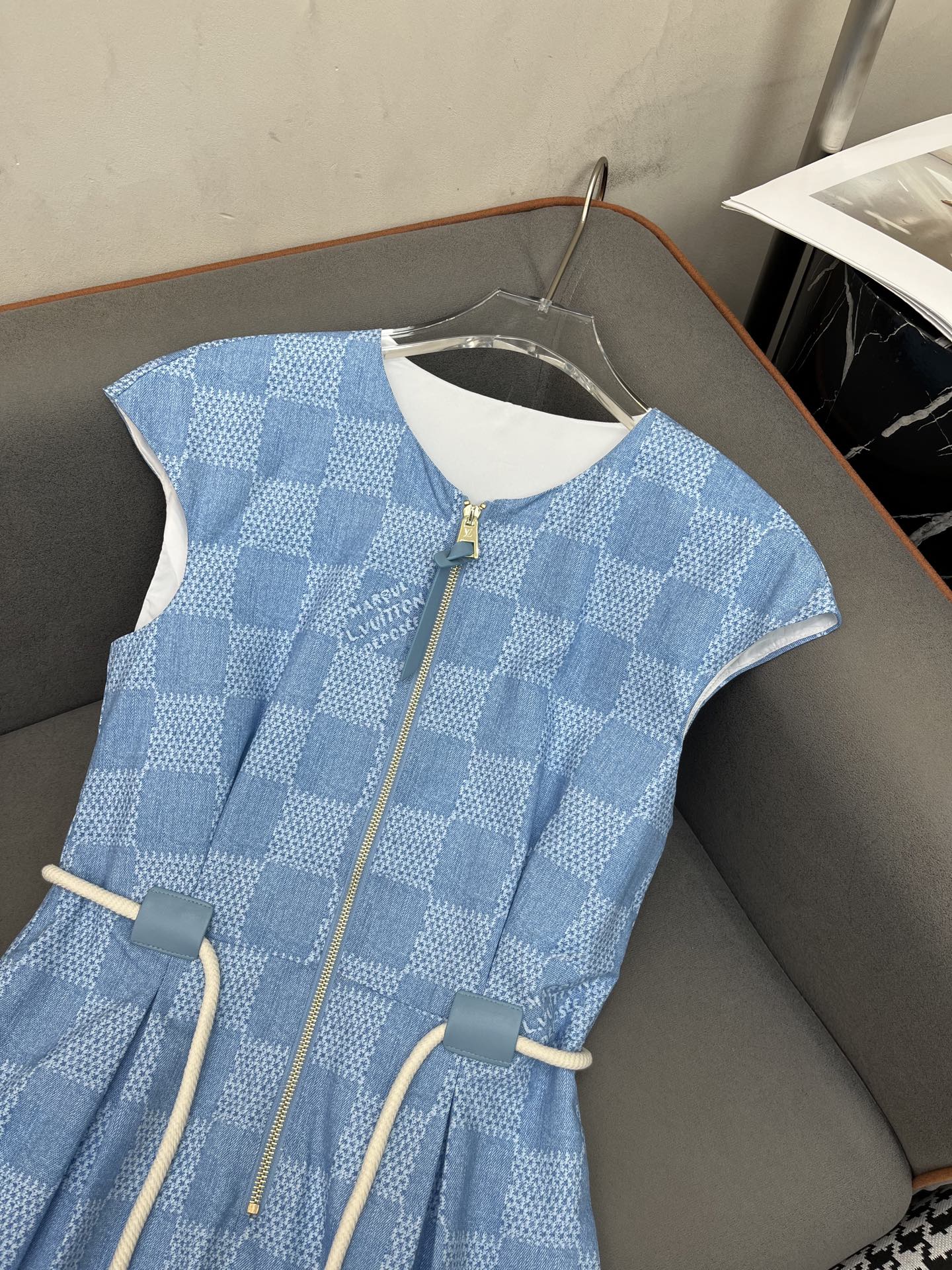 LV FRONT ZIP SLEEVELESS DRESS BLUE 25S IN POLYESTER 266638