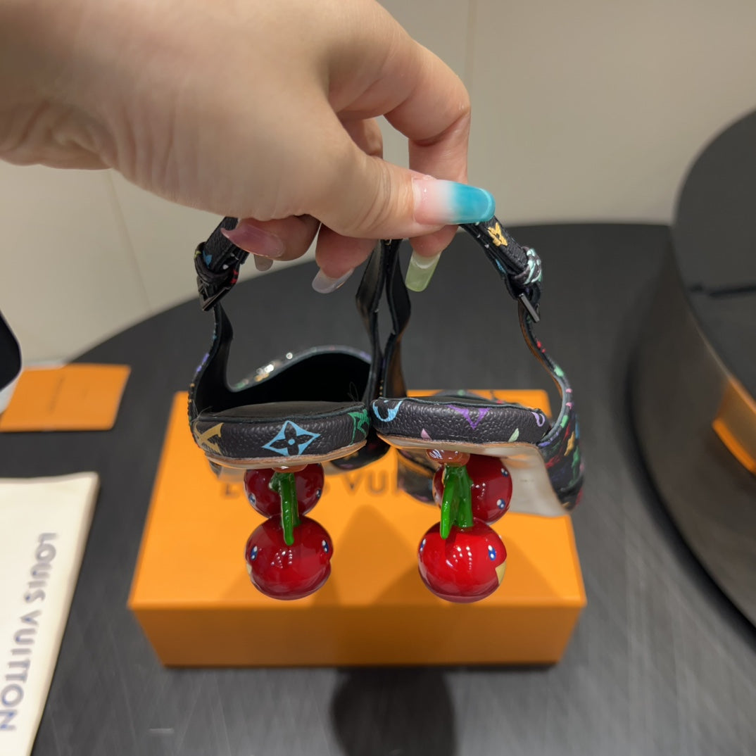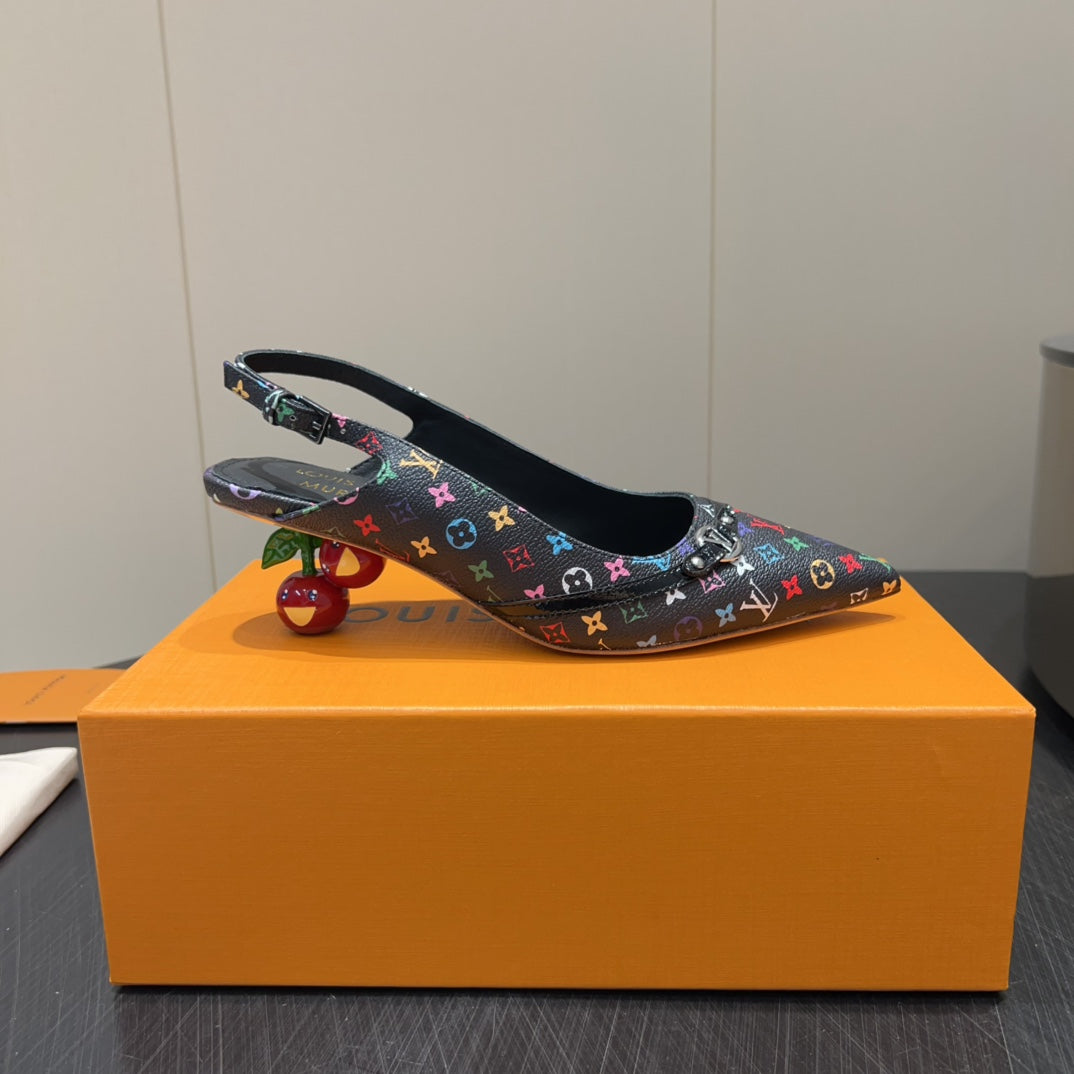 LV HIGH SLINGBACK LOGO PRINT 25S 55MM IN BLACK CALFSKIN