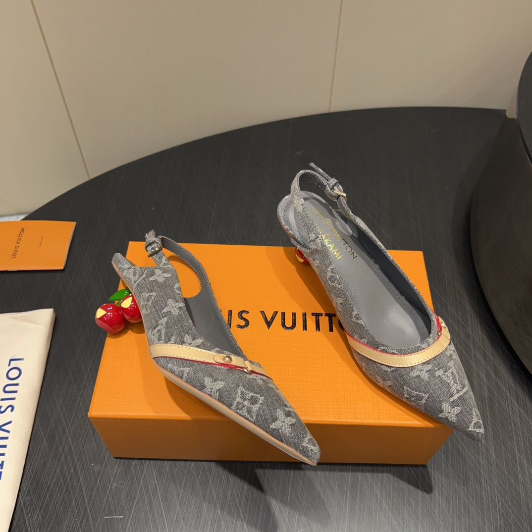 LV HIGH SLINGBACK LOGO PRINT 25S 55MM IN GREY DENIM