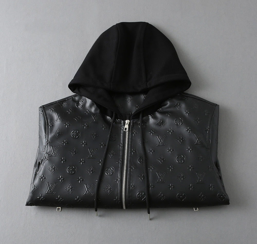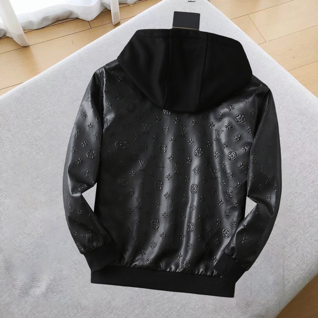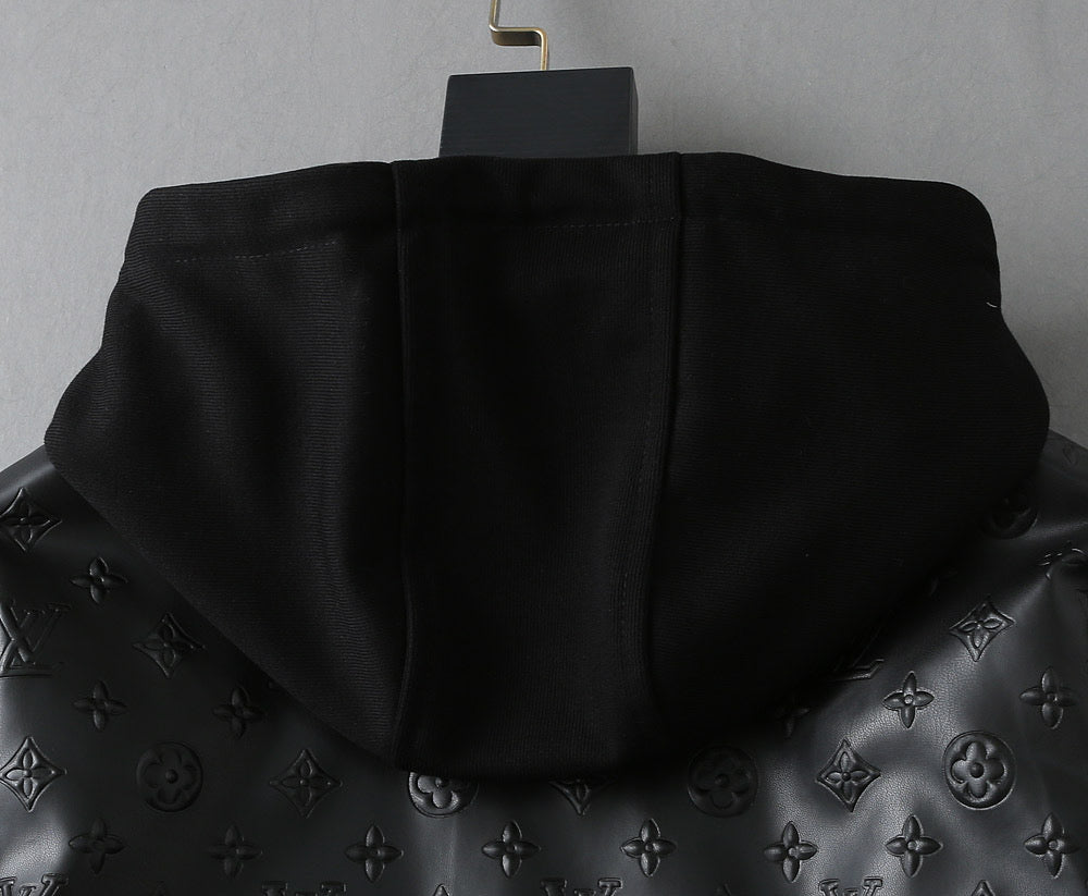 LV HOODED JACKET IN BLACK EMBOSSED CALFSKIN AND COTTON 239057