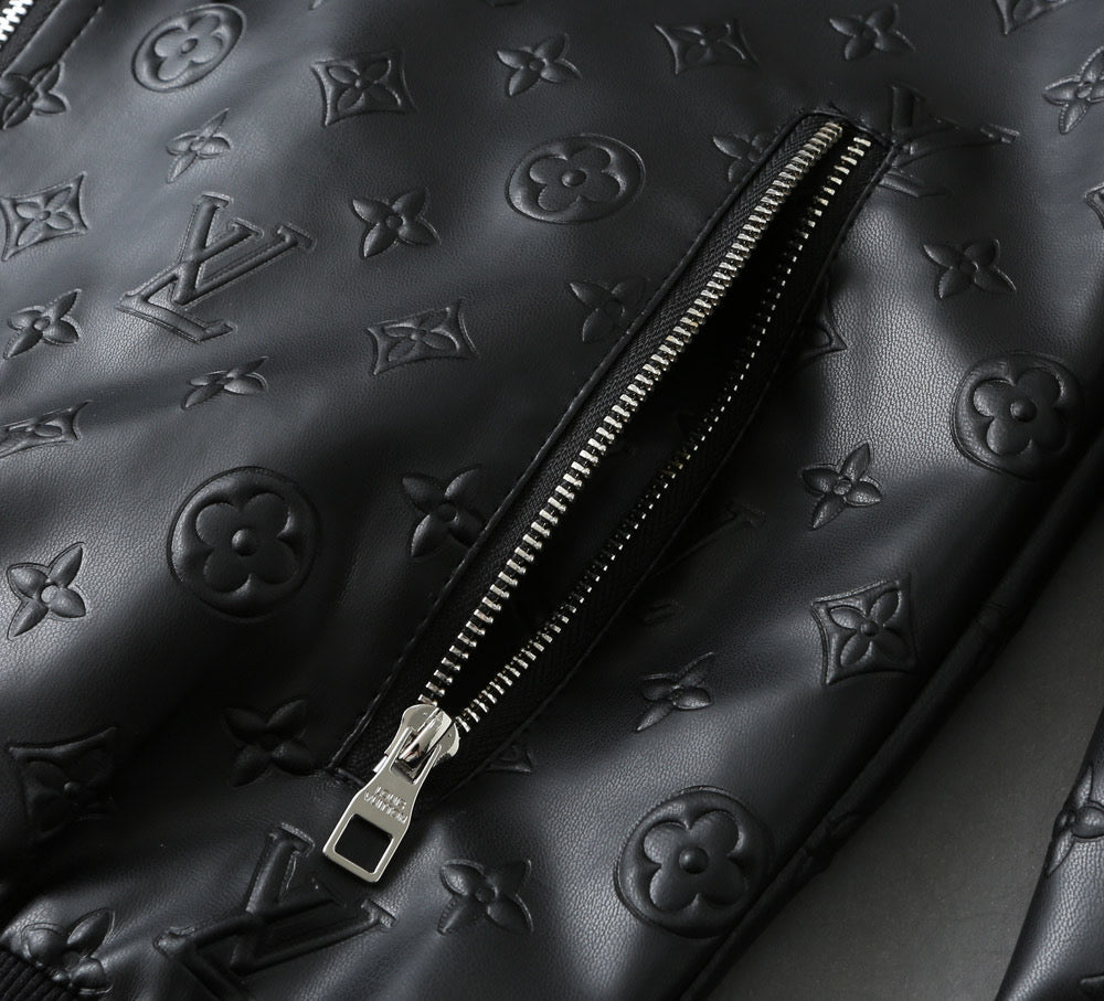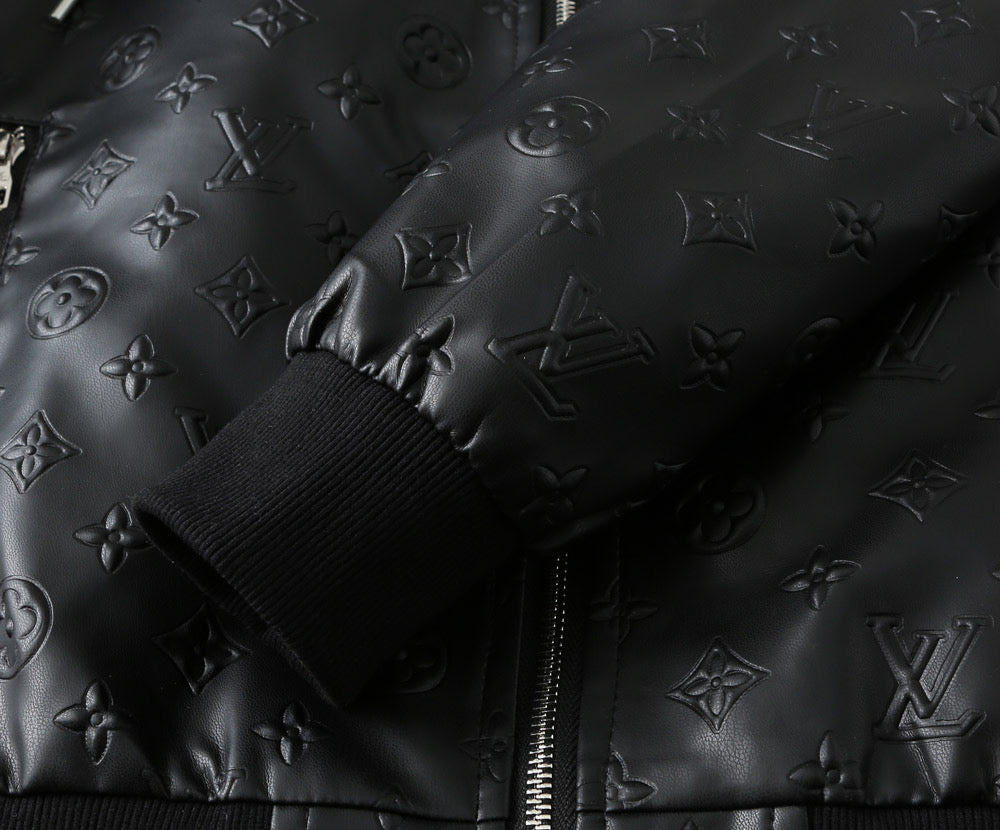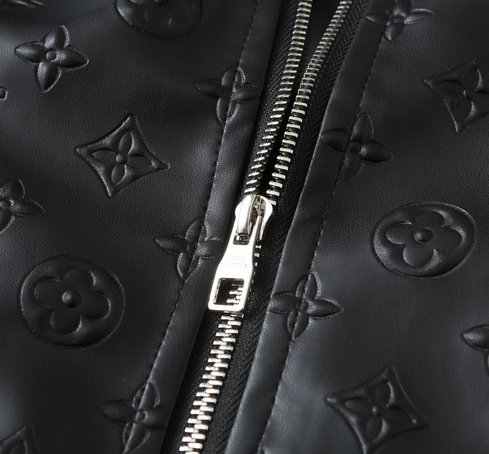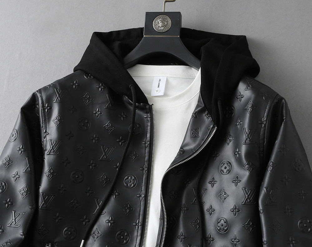 LV HOODED JACKET IN BLACK EMBOSSED CALFSKIN AND COTTON 239057