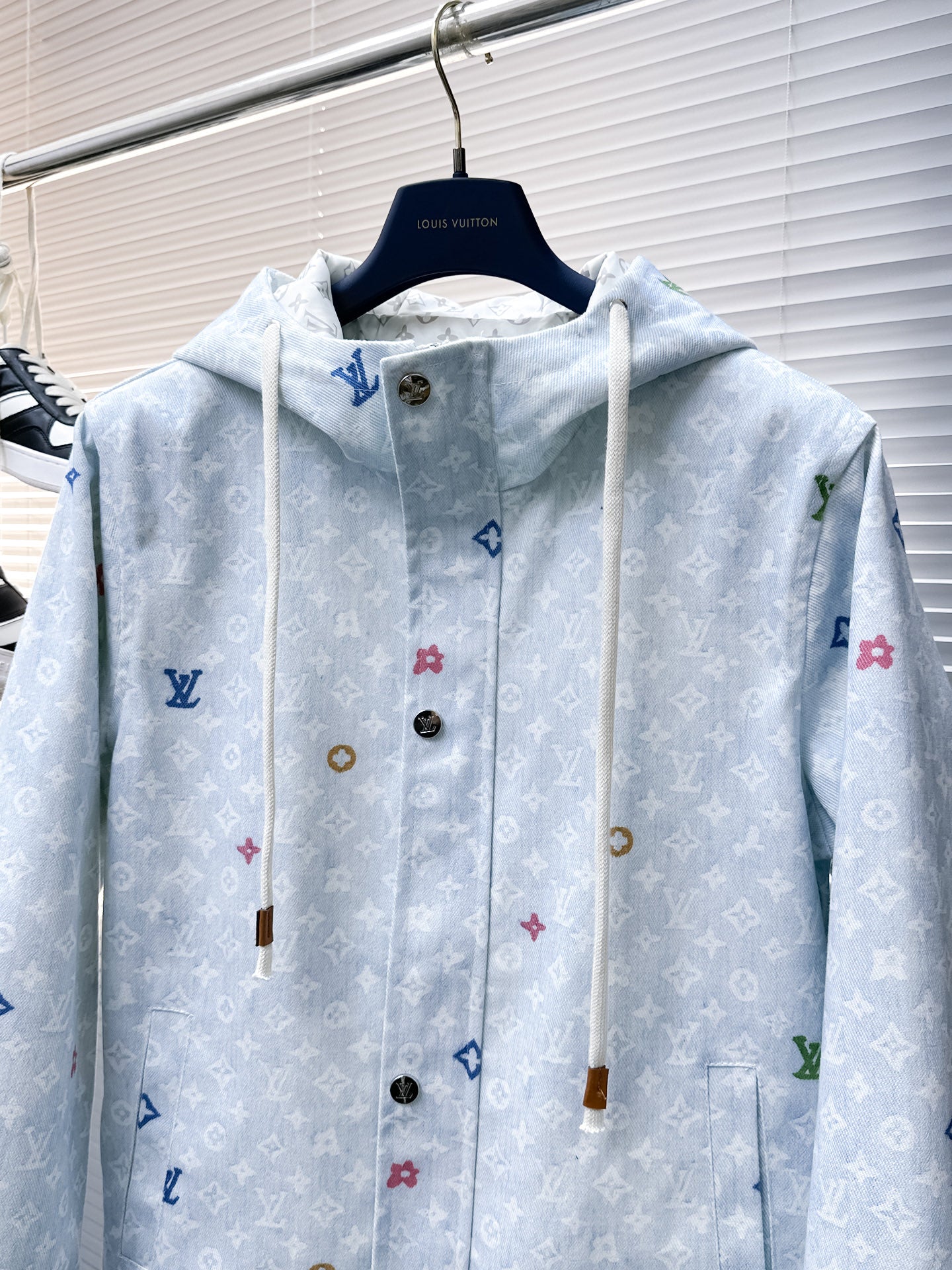 LV HOODED JACKET IN PASTEL LIGHT BLUE MONOGRAM CRAGGY DENIM 239120