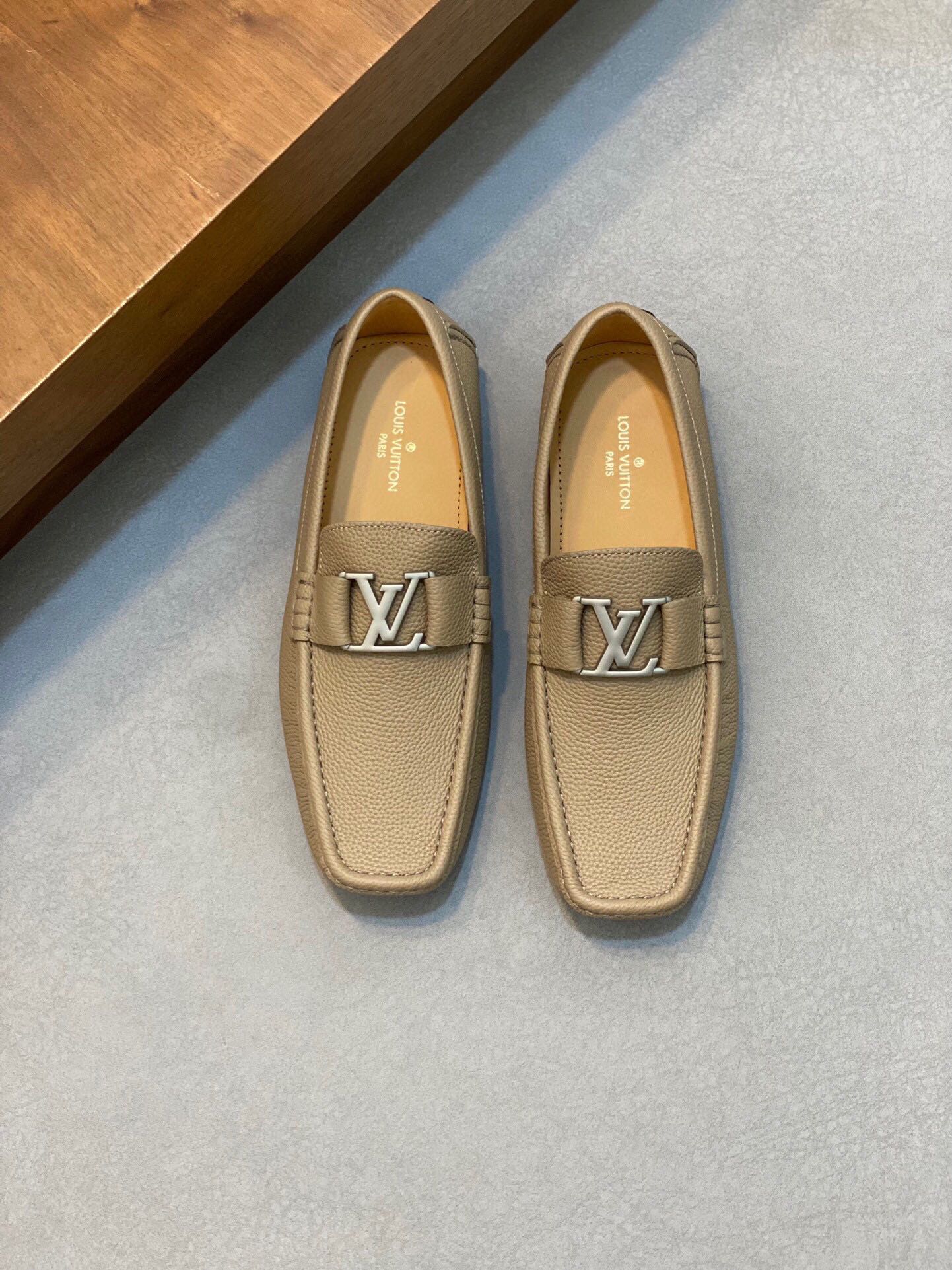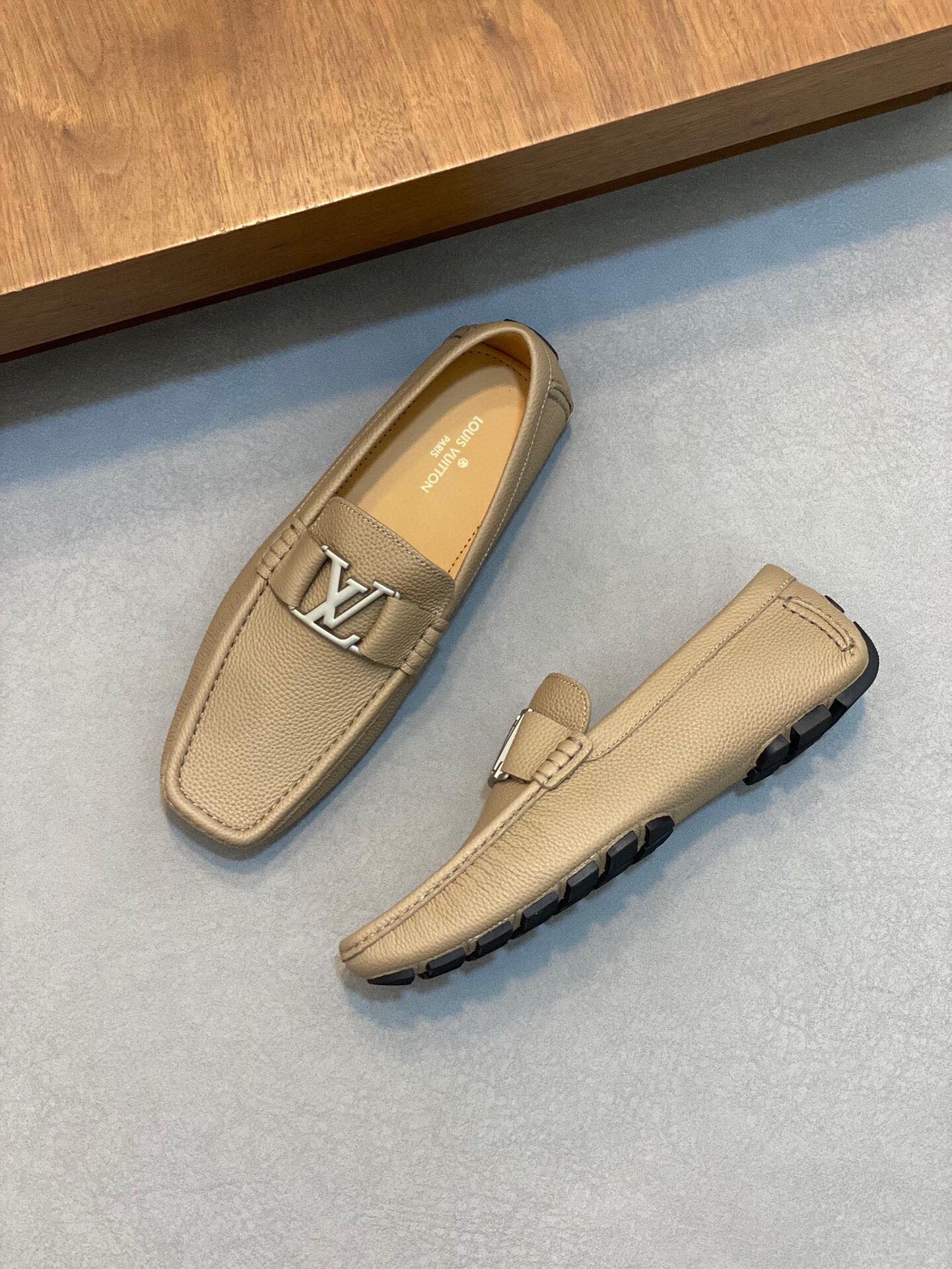 LV LOAFER IN DARK CREAM WRINKLE CALFSKIN WITH SILVER LOGO
