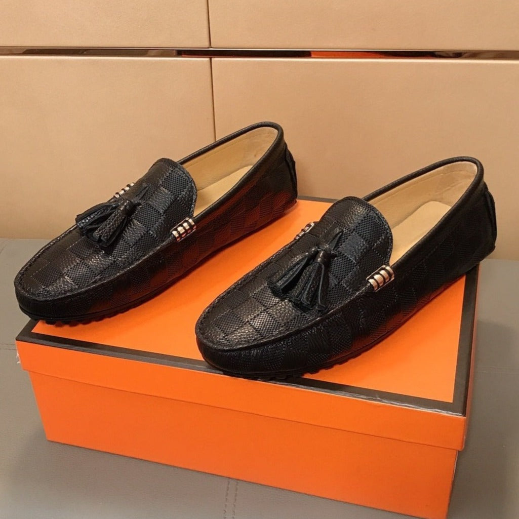 LV LOAFERS BLACK DAMIER CALFSKIN WITH TASSEL