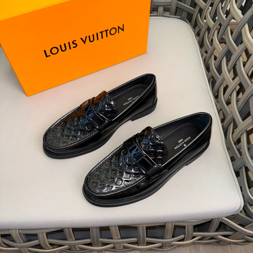 LV MAJOR LOAFERS IN BLACK EMBOSSED CALFSKIN