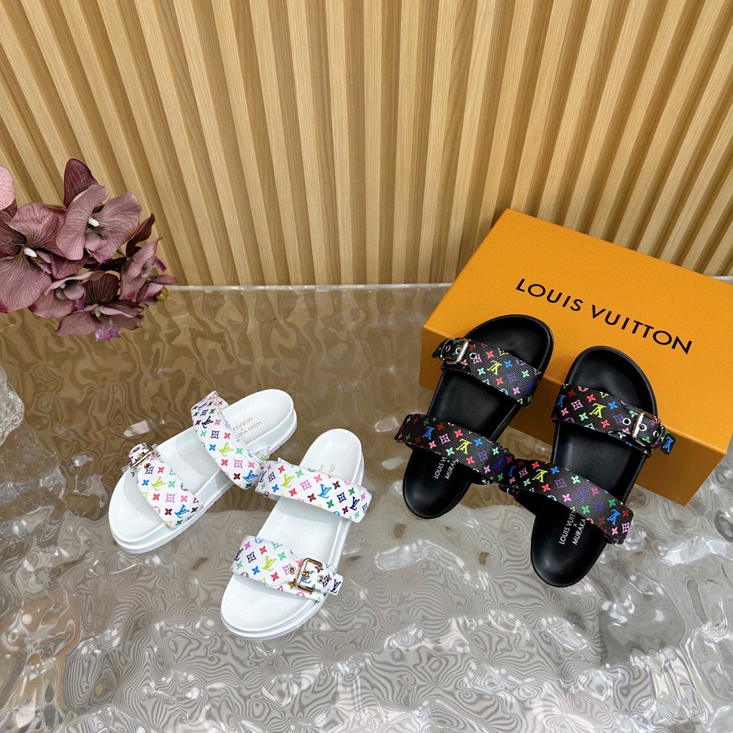 LV MONOGRAM SANDALS IN WHITE MULTICOLOR COATED CANVAS
