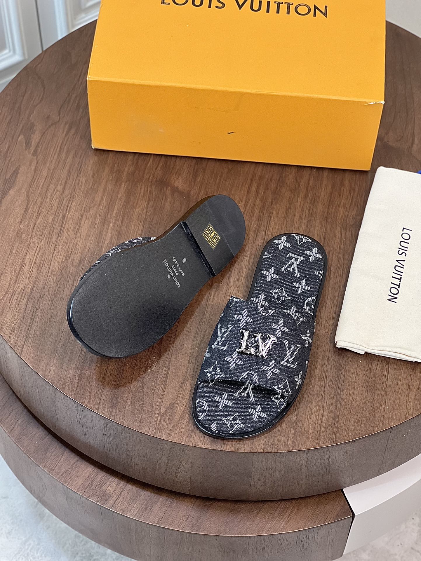 LV OASIS MULE BLACK MONOGRAM DENIM