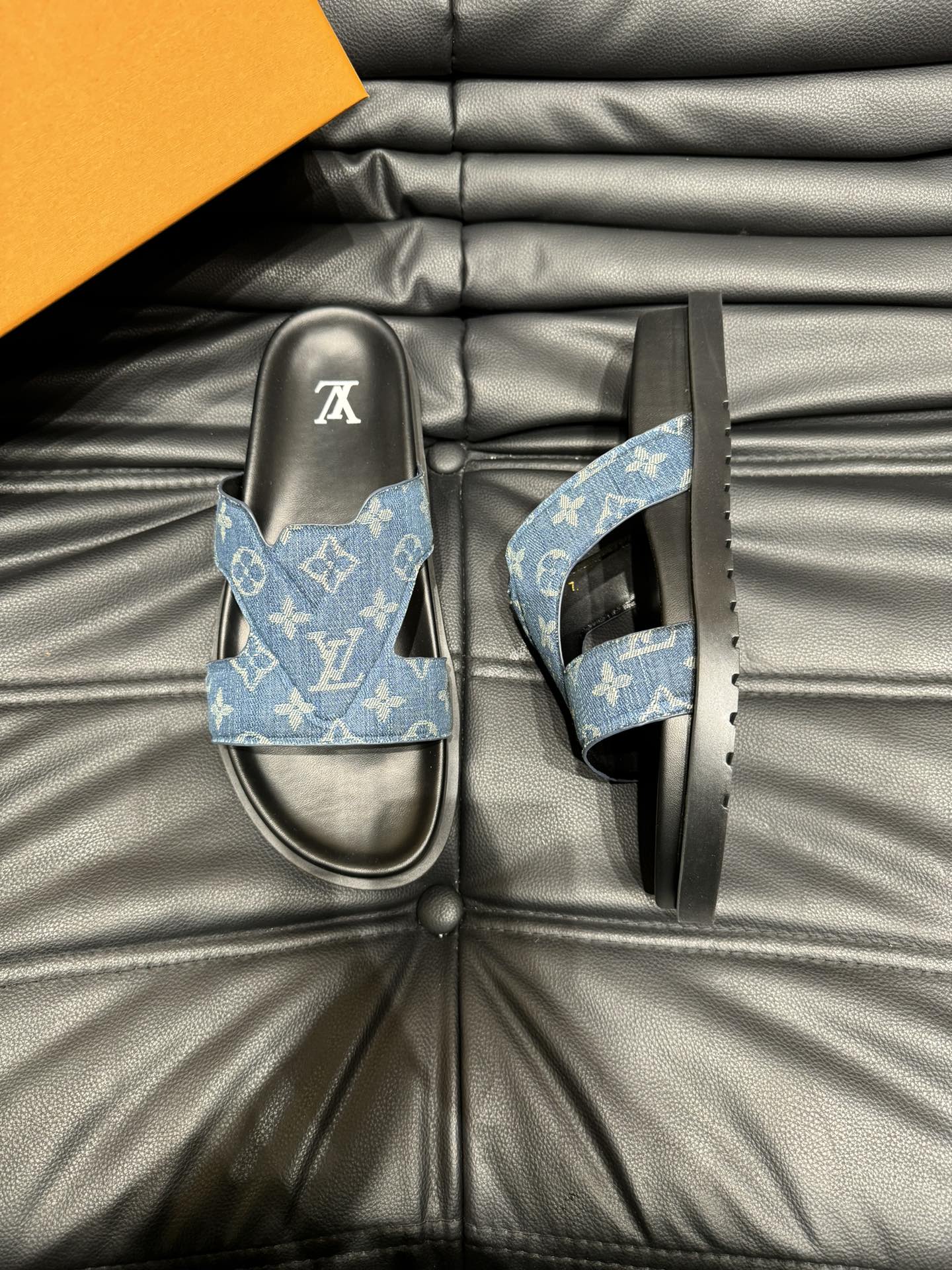 LV OASIS MULE IN BLUE DENIM MONOGRAM JACQUARD