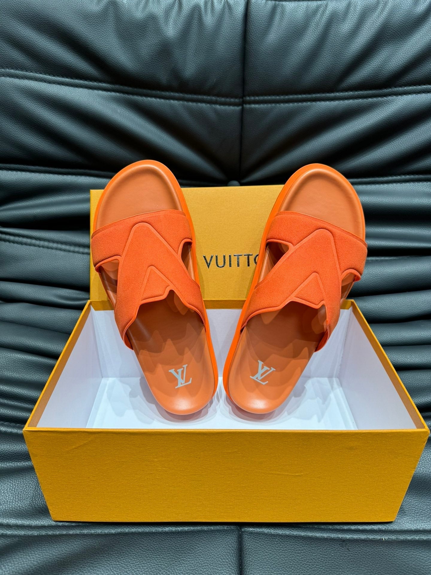 LV OASIS MULE IN CARROT ORANGE SUEDE CALFSKIN